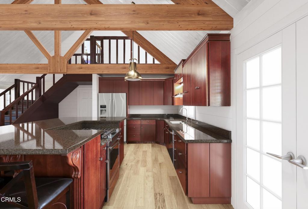 Beamed Ceilings, Breakfast Bar, Balcony, Breakfast Area, Cathedral Ceiling(s), Separate/Formal Dining Room, Eat-in Kitchen, Granite Counters, High Ceilings, Living Room Deck Attached, Multiple Staircases, Loft, Primary Suite