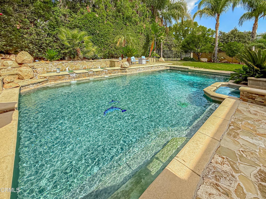 Set in the prestigious Fountainwood/Morrison community, this remarkable residence blends timeless style with modern updates across four bedrooms, four bathrooms, and more than 3,300 square feet of living space. Ideally situated within the award-winning Las Virgenes Unified School District, the home offers both sophistication and comfort for today's lifestyle.The interiors have been beautifully refreshed with brand-new flooring throughout the main level, creating a seamless flow between the elegant formal living and dining rooms, the inviting family room, and the well-appointed kitchen. Expansive windows and vaulted ceilings enhance the natural light, highlighting the home's open, airy ambiance.On the lower level, a private office and a bedroom with a full bath provide exceptional flexibility for guests, extended family, or those working from home. Upstairs, the generous primary suite offers a peaceful retreat, while additional bedrooms ensure space and privacy for all.The backyard is designed for entertaining and relaxation alike, with a large pool, spa, multiple patio areas, and mature landscaping that frame the home's outdoor living spaces. Beyond the property line, a private gate leads to a greenbelt park, extending the sense of space and serenity with direct access to nature.Additional highlights include newer HVAC compressors, meticulous landscaping, and a quiet neighborhood setting--all within minutes of scenic trails, parks, dining, and Malibu's beaches via Kanan Road.29251 Fountainwood Street is more than a home; it's a retreat. Where fresh, modern updates meet the charm of one of Agoura Hills' most desirable neighborhoods.