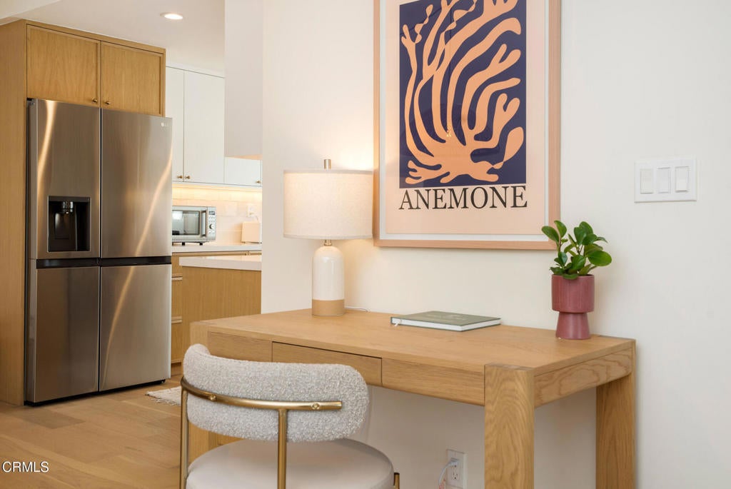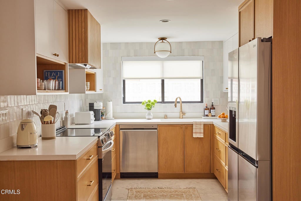 Refined Coastal Living - Mid-Century Charm Meets Modern Luxury, Just One Block from the Beach! Experience a rare opportunity to live full-time in a professionally redesigned mid-century residence just steps from the sand. This fully furnished 1-bedroom, 1-bath unit is part of a quiet, boutique 6-unit building transformed into a stylish coastal retreat. Inside, a bright and open layout features designer-selected furnishings, high-end finishes, and a seamless blend of comfort and style. Large windows fill the space with natural light and ocean breezes, while a private balcony offers a peaceful view of the sparkling pool. The thoughtfully appointed kitchen, spa-inspired bath, in-unit washer and dryer, and air conditioning provide modern convenience, while the building's shared pool invites resort-style relaxation. Located only one block from the beach, this residence is ideal for executive stays, corporate relocation, or anyone seeking a high-end coastal lifestyle. Offered at $3,295 per month with a 12-month lease.