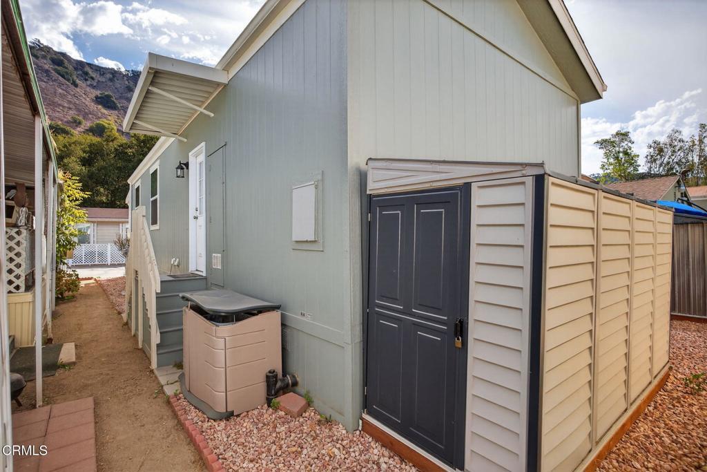 Spanish defines Arroyo as the brook. This is a brook side mobile home community nestled against Ventura's river to the Sea. Nature surrounds you with the sounds of water in the late winter, the caws of the red tail hawks in the distance and the bright white puffy clouds against the blue sky. This might just be the sign of retirement. The Arroyo, is a 55 year old and older community located near fishing, hiking, bike riding, surfing, all the wonderful activities recommended to keep you young. Delivered to the Arroyo last year, this Champion Skyline Manufactured little gem rests humbly on a pad just a bit larger than it. Built less than 1 year ago the modern amenities are easy to see; such as high ceilings, custom kitchen, open floor plan, beautiful storage, 1 bedroom, laundry room, central air/heat, and a covered patio. This is a wonderful way to have a landing in Ventura or Ojai to see your people should you be jet setting or have moved to a different state. Lock this up and go - it's a perfect community to be able to do that. Truly beautiful and resting in a pocket of mountains this tiny home alternative is the best choice.