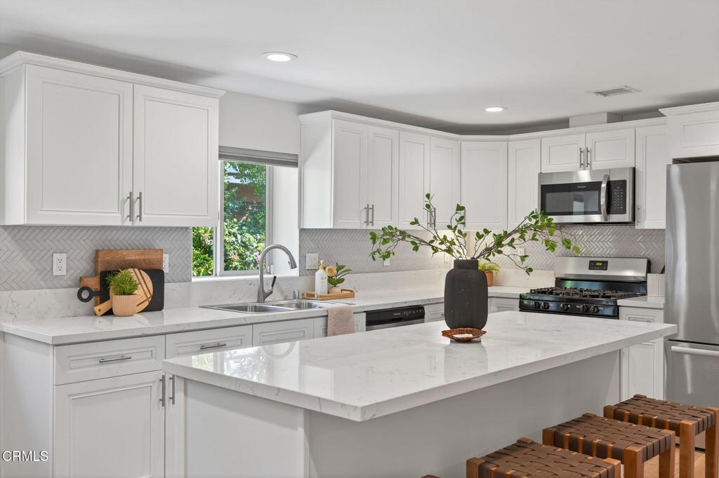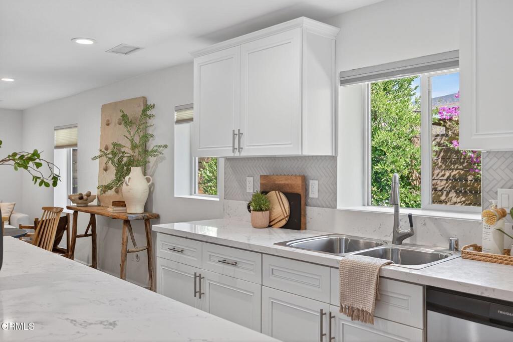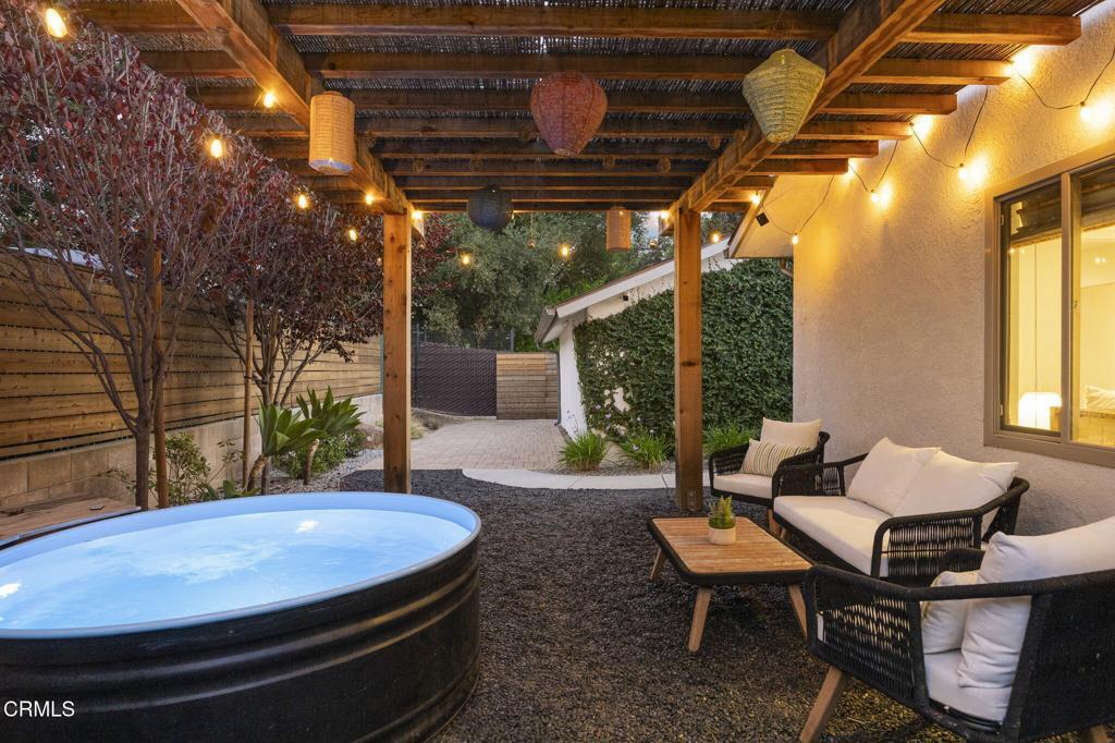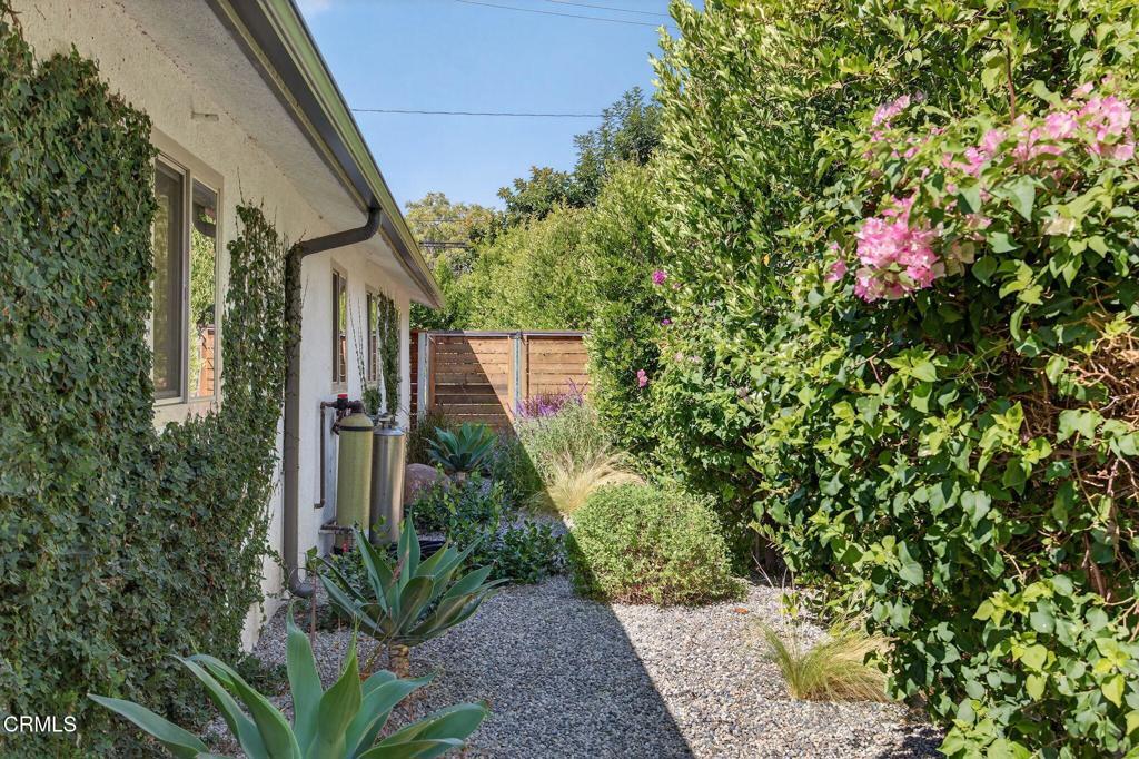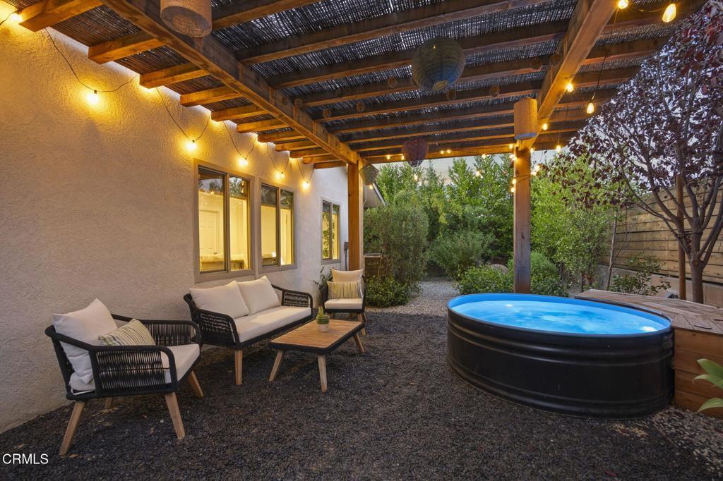 Welcome to your own private retreat tucked away in the vibrant community of Meiners Oaks! This beautifully remodeled, turn-key, 3 bedroom, 2 bath home blends modern comfort with Ojai charm, offering 1,456 sq. ft. of thoughtfully designed living space.Step inside to a bright, airy interior where dual-paned windows invite in natural light, beautifully complemented by recessed lighting in every room. At the heart of the home, the open-concept kitchen showcases sleek modern cabinetry, stainless steel appliances, and durable quartz countertops, anchored by a spacious island with abundant storage. Just off the kitchen, a well-appointed laundry room with custom cabinetry adds both style and convenience. The secluded primary suite is a true retreat, complete with an expansive walk-in style closet and an en-suite bath boasting a double vanity & generous shower with a full-width bench seat.The fully fenced property is a private sanctuary, offering plenty of usable space for entertaining or tranquil relaxation framed by vibrant crape myrtle trees and lush landscaping creating a sense of privacy and serenity. Unwind in Ojai's sunshine under the backyard pergola or take a dip in a unique Tipsy Tanks plunge pool--perfect for cooling off on warm afternoons. A solar-powered gated driveway provides secure parking for multiple vehicles, including RV parking for added flexibility. Notable upgrades include luxury System Pavers walkways and driveway, a security system, newer roof and HVAC system, ensuring convenience and peace of mind. Located just blocks away from gourmet restaurants, cafes, galleries, hiking trails, and schools, you'll enjoy all of Ojai's cultural events, while quick access to Highway 150 makes trips to Santa Barbara a breeze. Come see this beautiful home which merges functionality with charm, making it an ideal haven for anyone looking to plant roots in the vibrant community of Ojai.