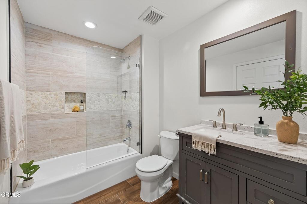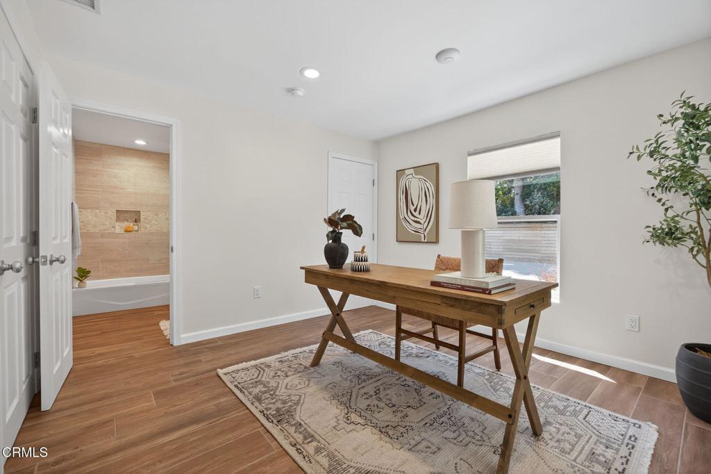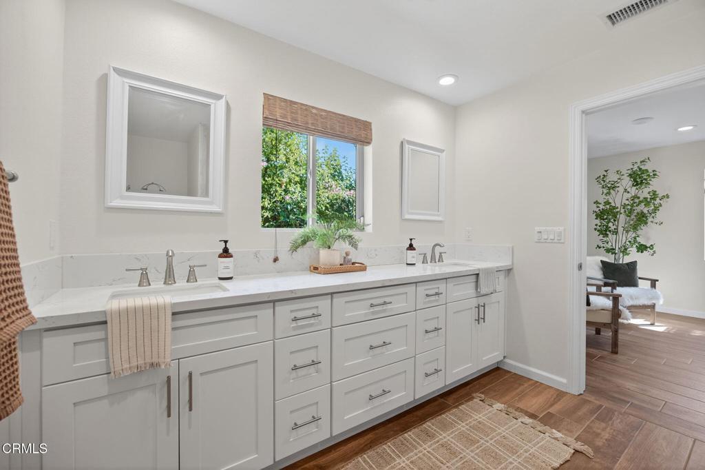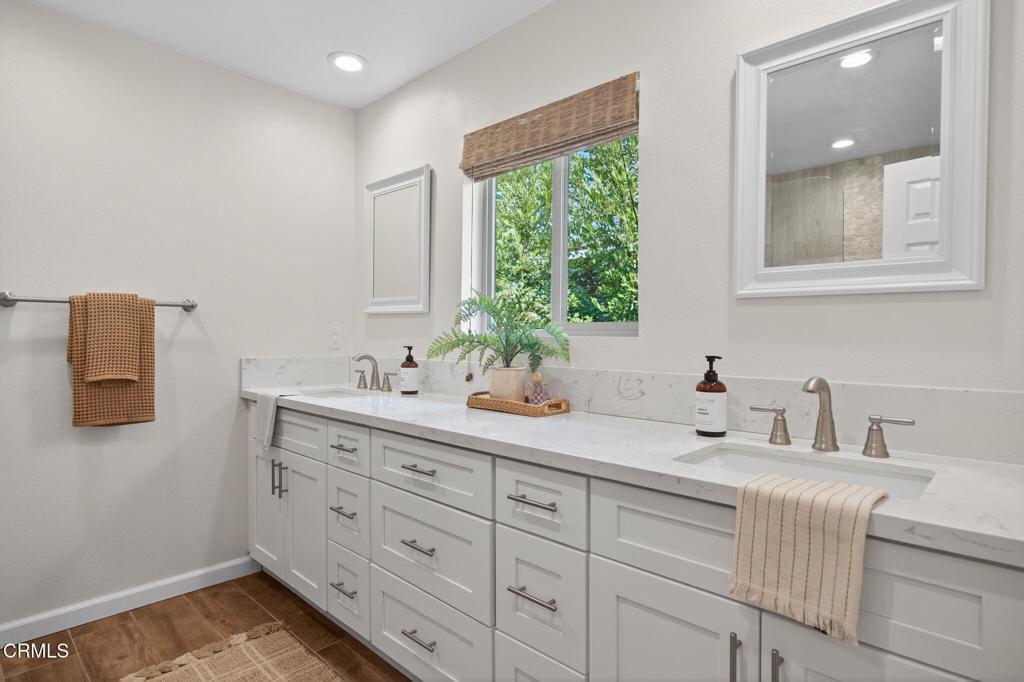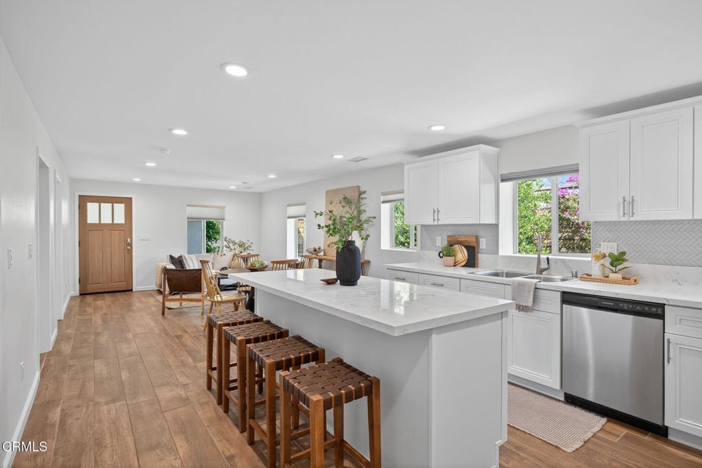 Welcome to your own private retreat tucked away in the vibrant community of Meiners Oaks! This beautifully remodeled, turn-key, 3 bedroom, 2 bath home blends modern comfort with Ojai charm, offering 1,456 sq. ft. of thoughtfully designed living space.Step inside to a bright, airy interior where dual-paned windows invite in natural light, beautifully complemented by recessed lighting in every room. At the heart of the home, the open-concept kitchen showcases sleek modern cabinetry, stainless steel appliances, and durable quartz countertops, anchored by a spacious island with abundant storage. Just off the kitchen, a well-appointed laundry room with custom cabinetry adds both style and convenience. The secluded primary suite is a true retreat, complete with an expansive walk-in style closet and an en-suite bath boasting a double vanity & generous shower with a full-width bench seat.The fully fenced property is a private sanctuary, offering plenty of usable space for entertaining or tranquil relaxation framed by vibrant crape myrtle trees and lush landscaping creating a sense of privacy and serenity. Unwind in Ojai's sunshine under the backyard pergola or take a dip in a unique Tipsy Tanks plunge pool--perfect for cooling off on warm afternoons. A solar-powered gated driveway provides secure parking for multiple vehicles, including RV parking for added flexibility. Notable upgrades include luxury System Pavers walkways and driveway, a security system, newer roof and HVAC system, ensuring convenience and peace of mind. Located just blocks away from gourmet restaurants, cafes, galleries, hiking trails, and schools, you'll enjoy all of Ojai's cultural events, while quick access to Highway 150 makes trips to Santa Barbara a breeze. Come see this beautiful home which merges functionality with charm, making it an ideal haven for anyone looking to plant roots in the vibrant community of Ojai.