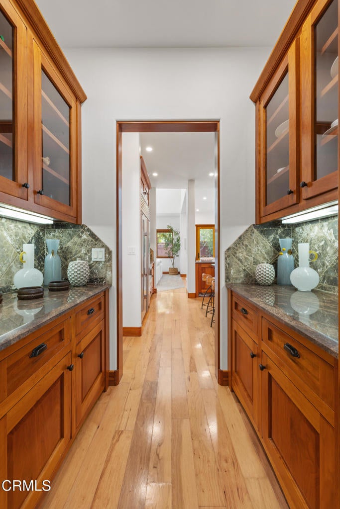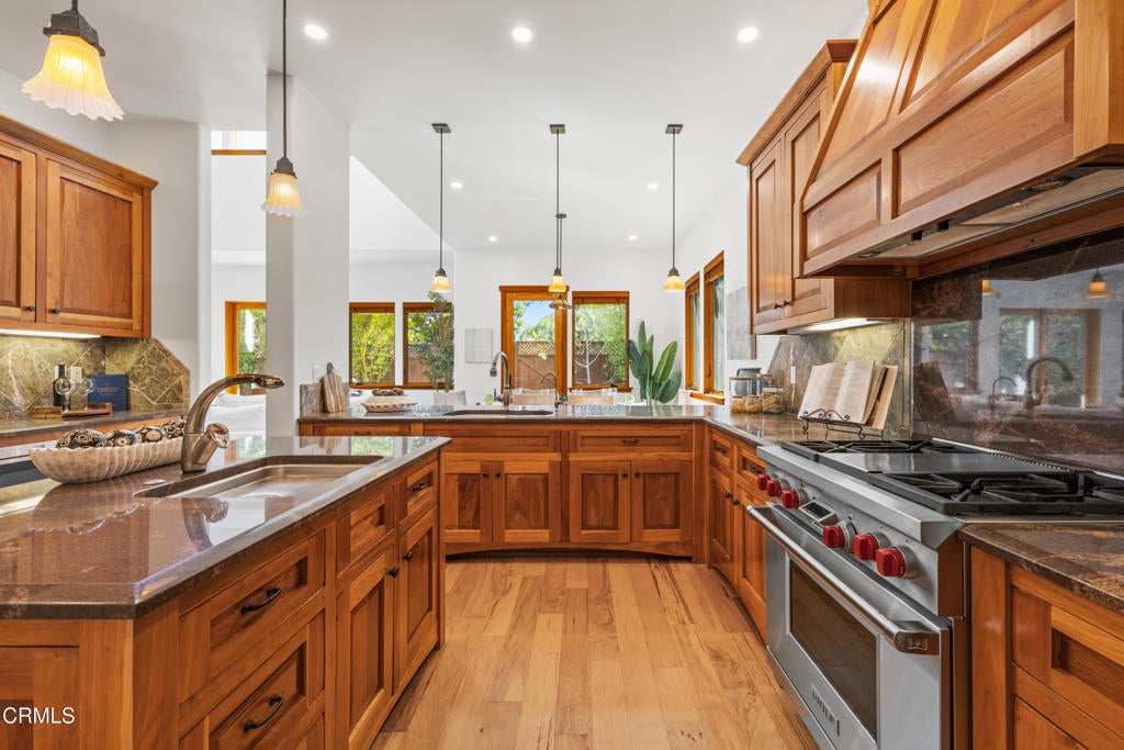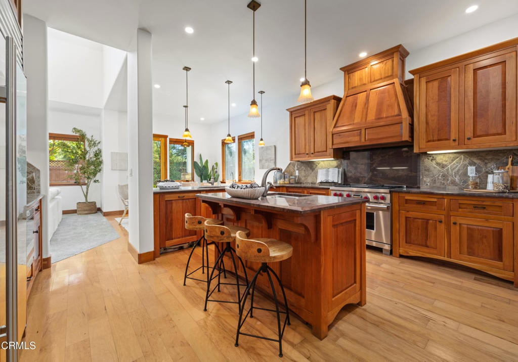 Two Craftsman-inspired homes combine elegance and modern comfort on this 0.53+/- acre Santa Ynez property, featuring a 3,722+/- sq. ft. residence and a 667+/- sq. ft. detached residential second unit. The lot offers the potential to be subdivided into two 1/4-acre parcels, creating an additional buildable site.Thoughtful design and fine finishes are showcased throughout, including rich wood floors, cherry and hickory interior doors, copper gutters, and custom cherry cabinetry. The versatile floor plan features four bedrooms and three-and-a-half baths, including two primary suites, ideal for multi-generational living or hosting guests. A dedicated office with built-in desks provides the perfect workspace, while formal and casual dining options include a sunlit breakfast nook and a refined dining room. The chef's kitchen boasts a large island, custom cabinetry, butler's pantry, Sub-Zero built-in refrigerator, 36'' Wolf range, and Wolf microwave drawer. It flows easily into the inviting living room, where soaring ceilings and a gas fireplace create a dramatic yet welcoming centerpiece. Anderson windows and patio doors frame views of the lush landscaped grounds, enhancing the seamless indoor-outdoor lifestyle. Outdoors, enjoy manicured lawns, a spacious back patio for entertaining, and the convenience of an attached three-car garage. A timeless home blending quality craftsmanship and modern amenities in the heart of Santa Ynez Valley.