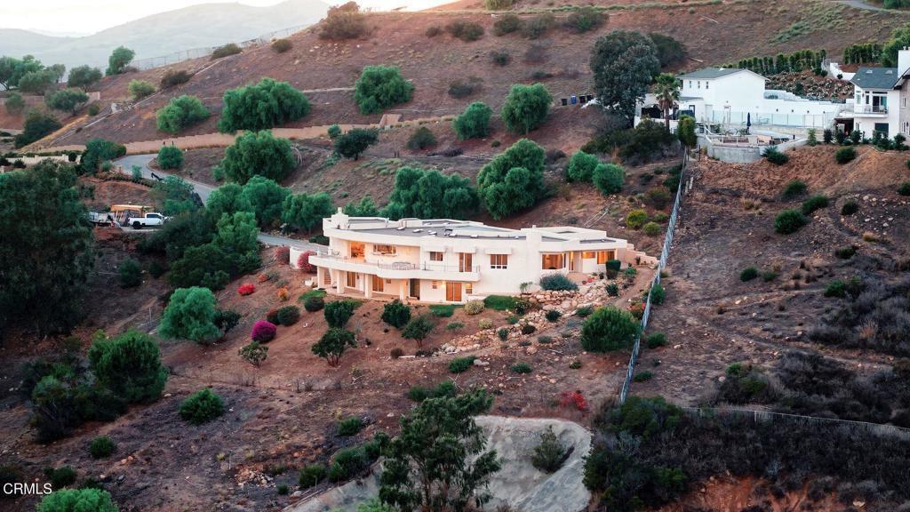 Tucked into the hillside of Santa Paula, 864 Montclair is a breathtaking, one-of-a-kind example of Frank Lloyd Wright's organic architecture. Designed by Wright's protege, Richard Martinez, the home embodies harmony between structure and nature--built into the mountain, not atop it. Its curved design follows the natural hillside, creating a serene flow with the land and offering sweeping views of Santa Paula, the surrounding mountains, and the ocean.The main level welcomes you with dramatic floor to ceiling windows, allowing light to cascade throughout. Skylights flood the home with natural daylight, illuminating the primary spaces and the lower level below. The entry-level primary suite and bathroom features a fireplace and a walk-through closet, designed for comfort and tranquility.Downstairs, three additional bedrooms each have dedicated bathrooms, providing privacy and retreat. A four-car garage with a custom turntable honors Santa Paula's car culture. From the expansive balcony, enjoy views of small planes landing and taking off, adding to this hillside sanctuary's charm.Never before offered for sale, this extraordinary home has been lovingly maintained by its original owners. Photos cannot capture the remarkable light, intentional design, or peaceful energy that make this residence truly unique.
