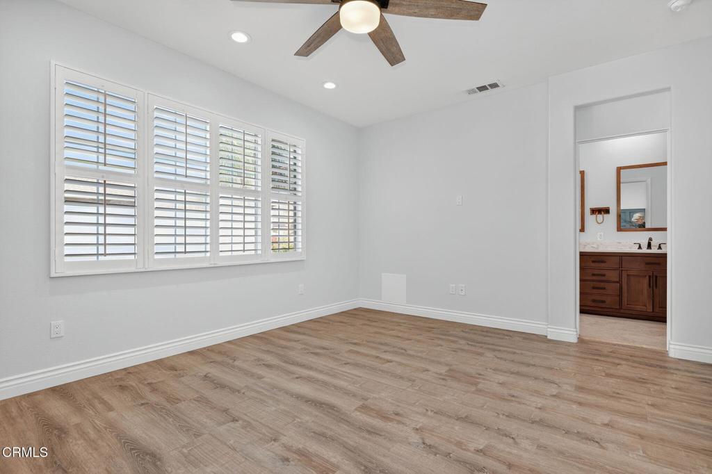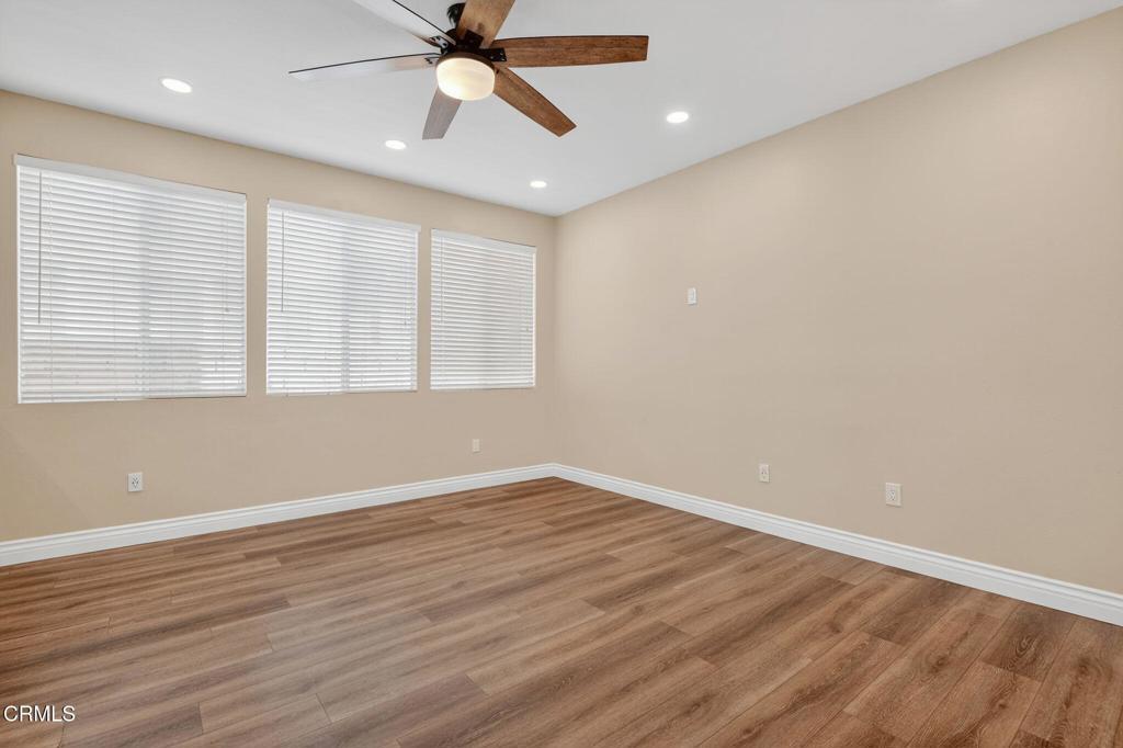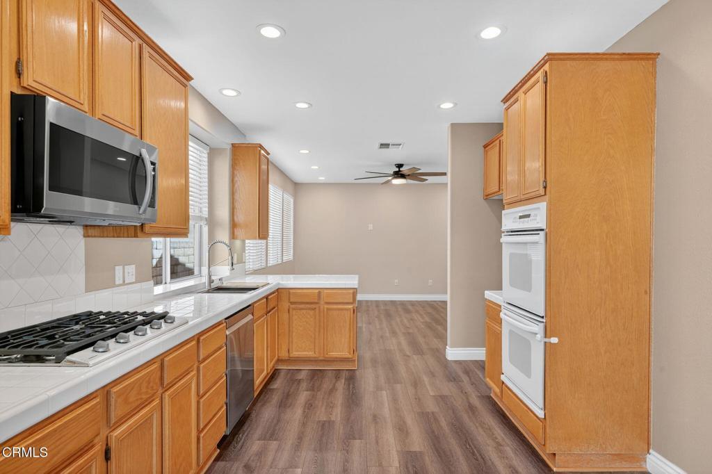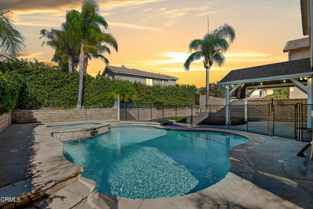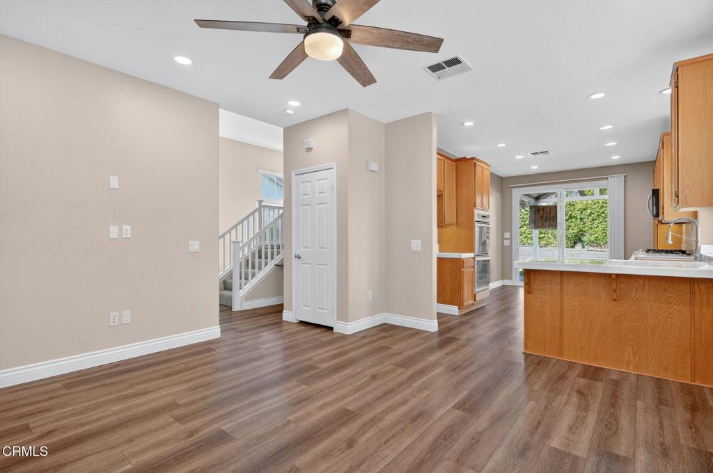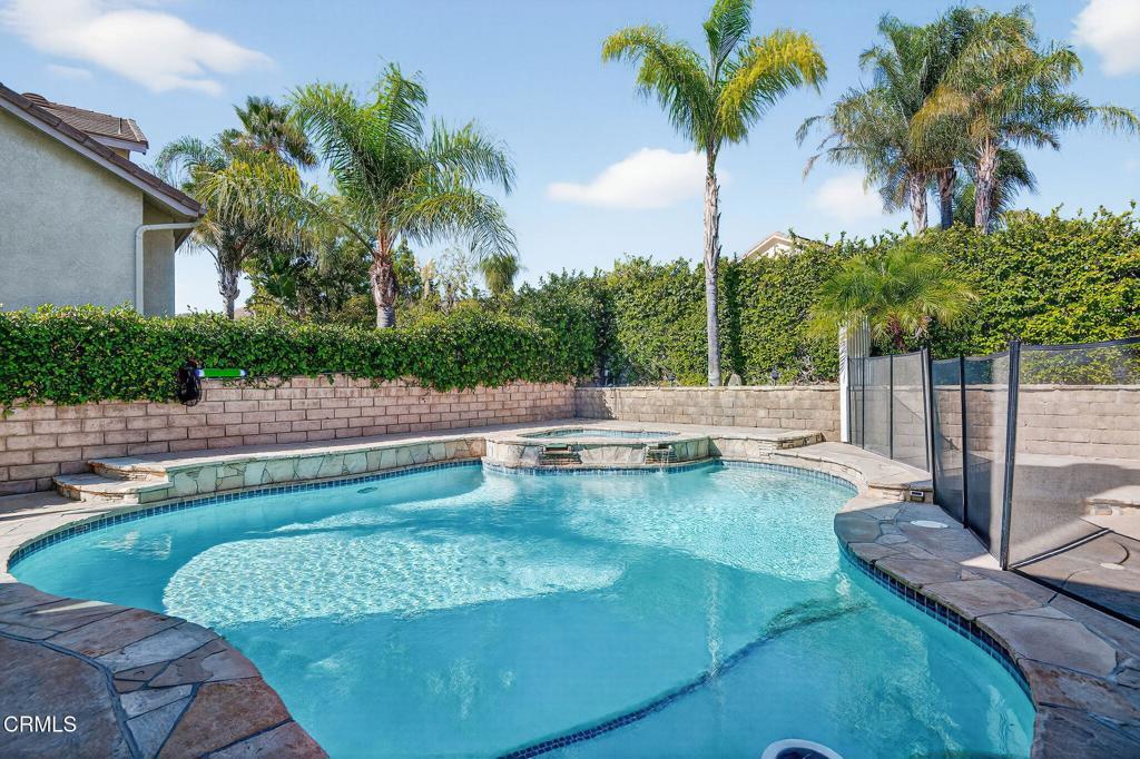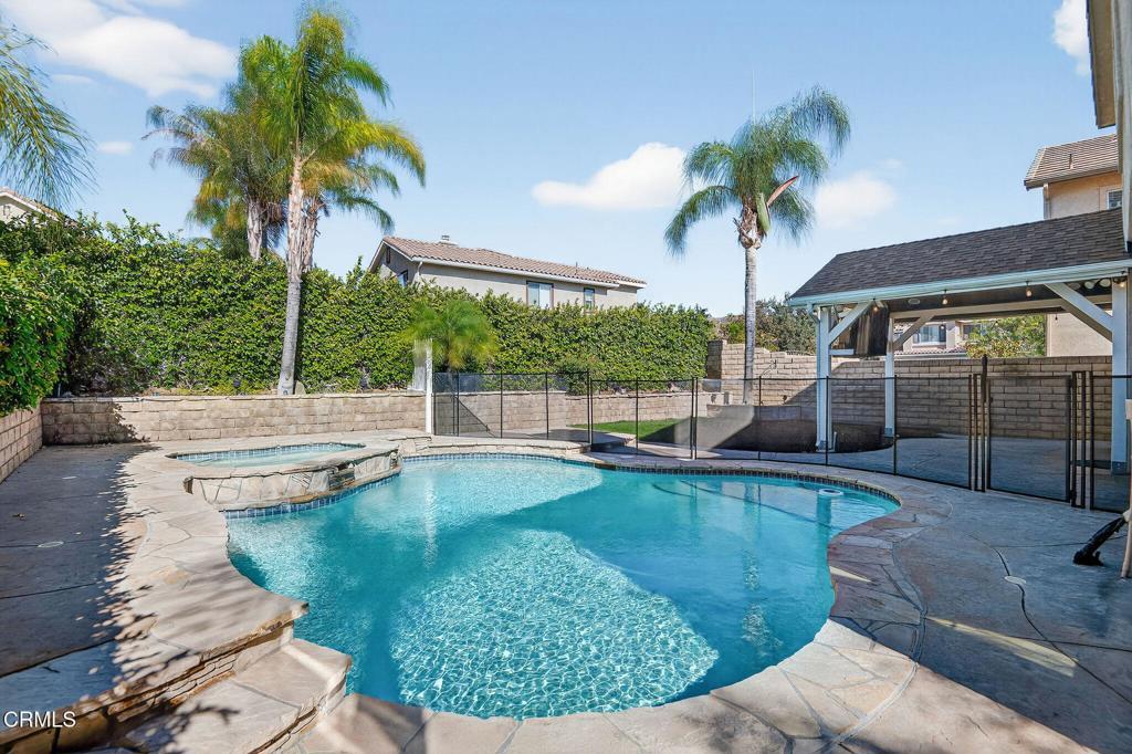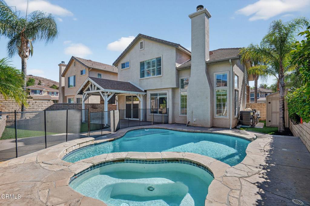 Set on an idyllic cul-de-sac in the desirable White Oak Creek tract, this beautifully maintained Simi Valley home blends style, function, and modern comfort. Featuring 3 spacious bedrooms plus a downstairs enclosed room that serves as a 4th bedroom or office, the home offers a bright, open floor plan with high ceilings, newer flooring, and abundant natural light. The remodeled kitchen includes stainless appliances, and a double oven.Upstairs, the primary suite features a walk-in closet and a remodeled bathroom with a double vanity and designer finishes. Notable upgrades include a new HVAC system (2023), whole-house fan, updated recessed LED lighting, ceiling fans, and new carpet (2025).Enjoy the private backyard retreat with a sparkling pool and spa, new variable-speed pool equipment with Wi-Fi controls, lush turf landscaping, and a patio with a TV-ready cover--perfect for relaxing or entertaining. Added features include landscape lighting, Ring cameras, new window shutters, and solar blinds. Conveniently located near hiking and horse trails, parks, and unified Simi Valley schools.