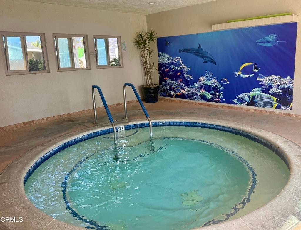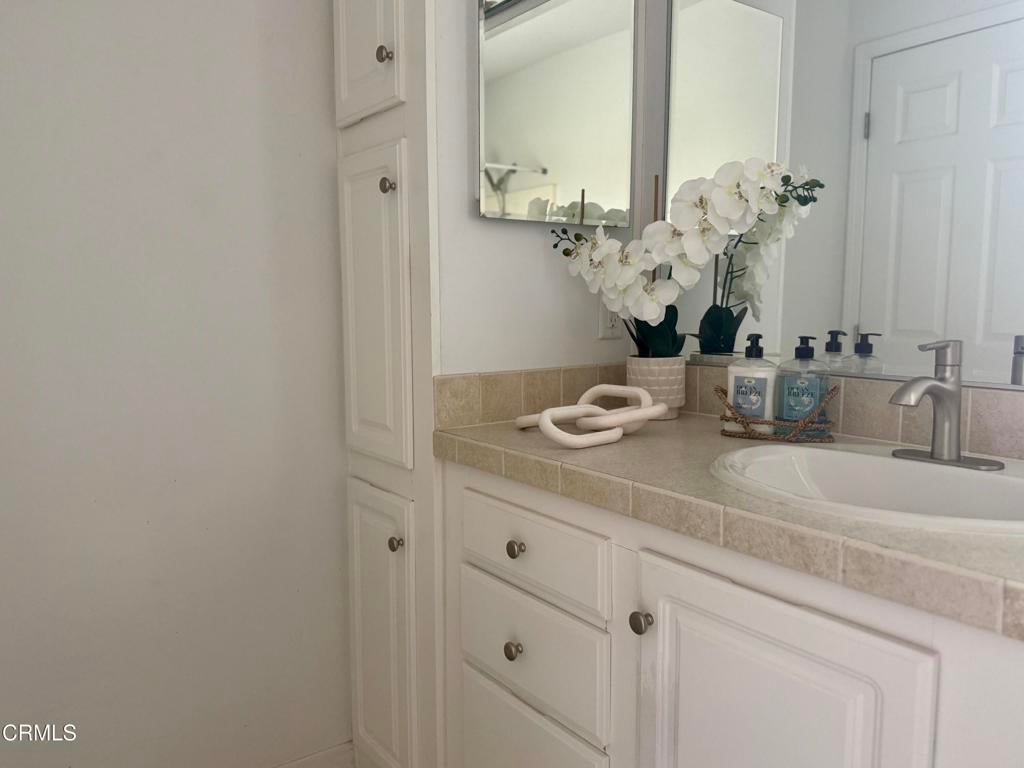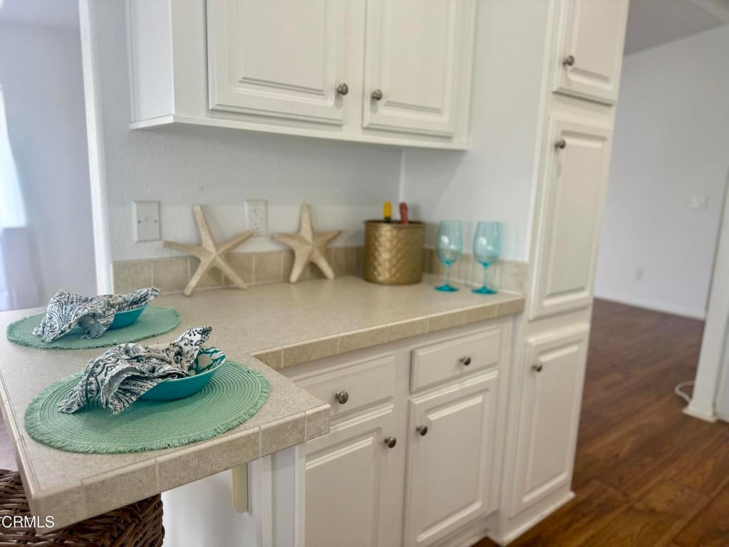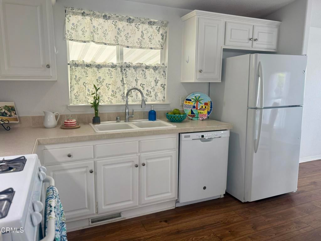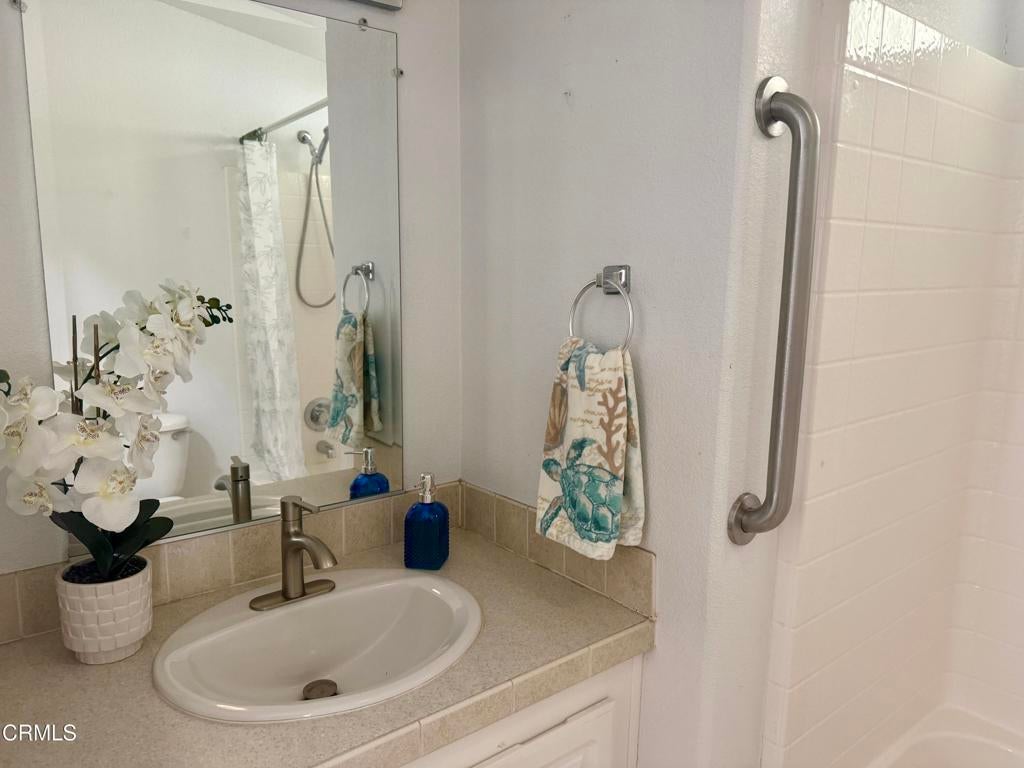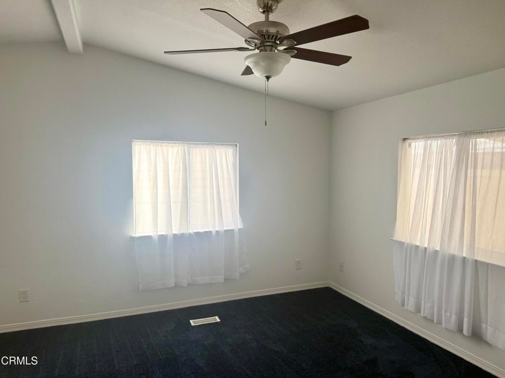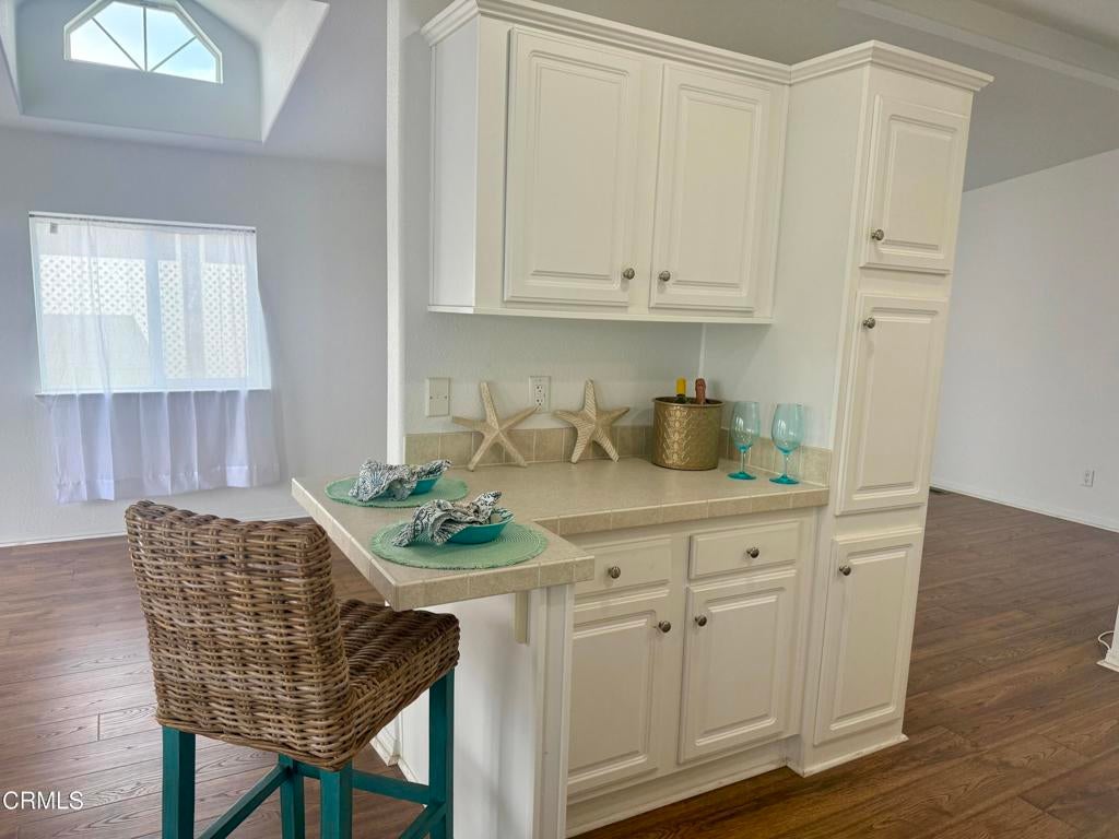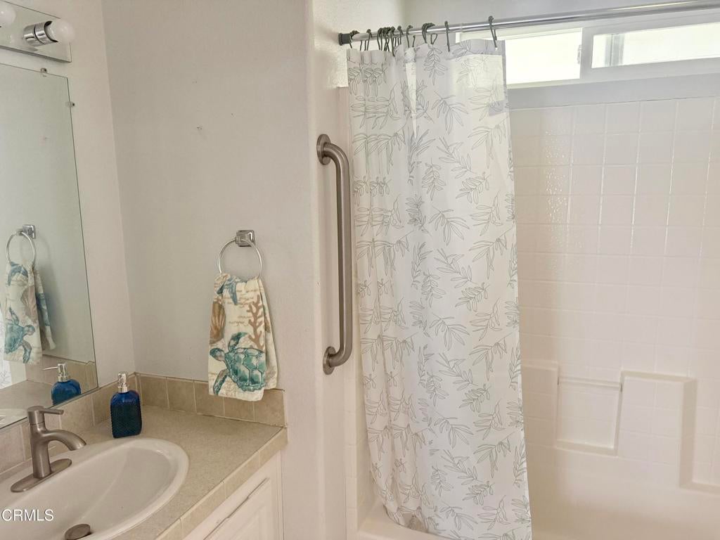 Welcome to 7 Wisteria Way, a well-maintained manufactured home featuring a new Certainteed Landmark Solaris Cool Roof (installed July 2025) and a fantastic location within a desirable age-restricted community. Natural light streams through well-placed windows, highlighting the airy living spaces and easy-care hard-surface flooring throughout (with plush carpet in the bedrooms). The primary suite includes a spacious closet and en suite bath with abundant storage and an easily-accessible shower. The hall bath has a shower and tub combination. Keep cool with ceiling fans in both bedrooms, the family room and the dining area. The light kitchen opens to the dining area with a cute counter for possible seating or serving too. Enjoy the inviting shady front porch with beautiful used brick detail--perfect for relaxing with a book, entertaining or connecting with neighbors in this vibrant, active community. A large storage shed with shelving offers added convenience, while the extended carport can accommodate longer vehicles or two cars parked tandem. Thoughtfully appointed, this is a wonderful place to call home! The community itself has a sparkling pool surrounded by a grassy lawn, palm trees, picnic tables, and courts for shuffle ball and corn hole. There is a covered hot tub as well as an event space. East Ventura combines the quiet atmosphere of agricultural fields mingled with residential neighborhoods including parks and schools. Trailheads at Harmon Canyon to area hiking are found off of Foothill Road. Multiple golf courses are nearby. For dining, shopping and entertainment, the Collection in Oxnard is 5.5 miles away, while Downtown Ventura's arts and cultural corridor is 10 miles away. For days at the beach, sea glass collecting or enjoying the sunset over the Pacific, the fastest route is to take the nearby 126 to the Seaward exit off the 101 - a 9 mile ride. Whether for a full-time residence, an easy 'lock and leave' for the frequent traveler or as a cooler climate weekend home, Ventura has much to offer!