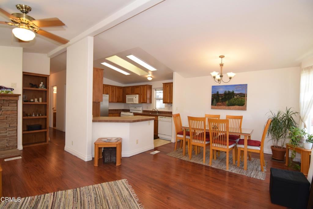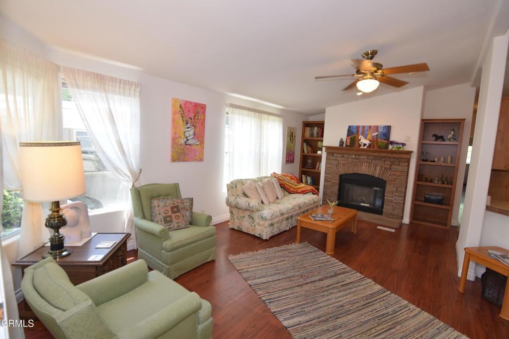 There is a lot to love about this home: a well put together floor plan that offers THREE BEDROOMS and TWO FULL BATHROOMS; newer construction from 2004; brand new air conditioning; and completely repainted interior with hard flooring everywhere. There's even a wood burning fireplace with chimney. And if you've been looking at homes this year, it's hard to find something like this for under $400k. The home has been well maintained during its lifetime and is ready to move in. With the primary bedroom at the other end of the home, you will not only enjoy added privacy, but also partake of the panoramic view outside your window. This bedroom has direct access to the back porch, where you can soak in the view everyday while enjoying coffee or reading a favorite book. This all ages park features mature trees and landscaping, and the added amenities of a heated swimming pool, clubhouse with kitchen, billiards, and RV storage. And don't forget you are still close to many things, with easy access to the freeway and all the things Woodland Hills has to offer. Or forget it all and turn right on Topanga and head to the beach! Let's go!