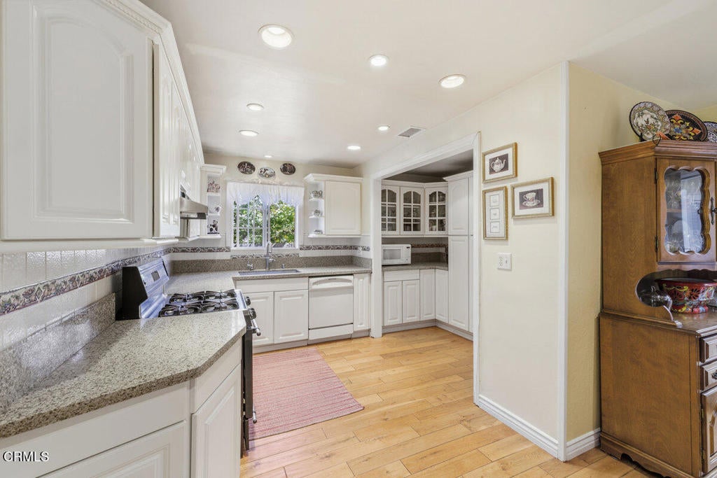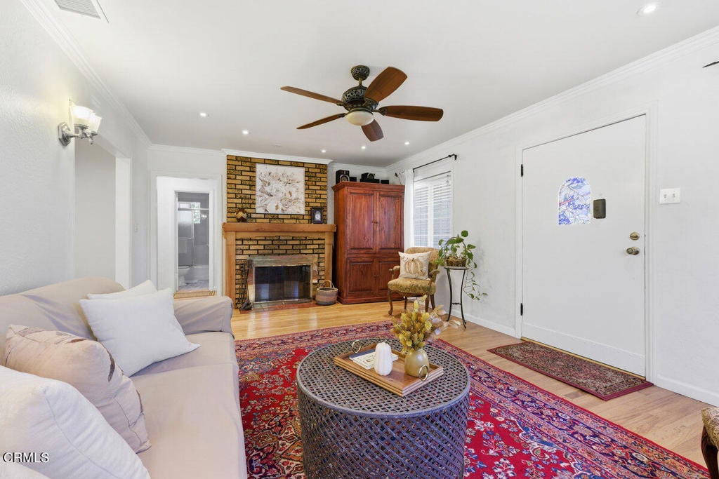 Two homes on one lot. The original and charming 1948 home (3 Bedrooms & 1 Bath) and a separate detached 2023 ADU (1 bedroom & 1 bath). Both homes have own entrances and yards. Original home greets you with welcoming front porch, wood flooring, updated dual-pane windows, and wood burning fireplace. The large dining room flows into a redesigned and enlarged kitchen featuring quartz countertops, modern cabinetry, stainless steel appliances and generous storage. The bedrooms have mirrored closed doors. Recent enhancements include upgraded 220-amp electrical service, a Lennox HVAC system, dual pane windows throughout newer interior and exterior paint and newer main gas line. Interior laundry closet.The separate accessory dwelling unit (ADU), completed in 2023, offers its own entrance, yard, and stylish interior. The living room features Wailua Luxury plank flooring, contemporary dual paned windows, ceiling fan and recessed lighting. The kitchen is outfitted with a floating bamboo floor, quartz countertops, a deep farmhouse sink, and an inviting garden window. The big bedroom features a huge closet, two windows and skylight adding lots of natural light. The ADU is equipped with a Mitsubishi dual-zone climate system, newer wiring and plumbing, and energy-efficient spray foam insulation. It enjoys its own private street-facing entry and separate backyard. Situated on a corner lot, the property includes a two-car covered carport. Nestled near the scenic Ojai Valley and its popular bike trail, the location is within walking distance to a local market, coffee and donut shops and popular breakfast spot. Oak View offers easy access to both downtown Ojai and Ventura, with the ocean just a good bike ride away. Whether you're heading to the beach or exploring nearby vineyards, this setting offers convenience and charm.