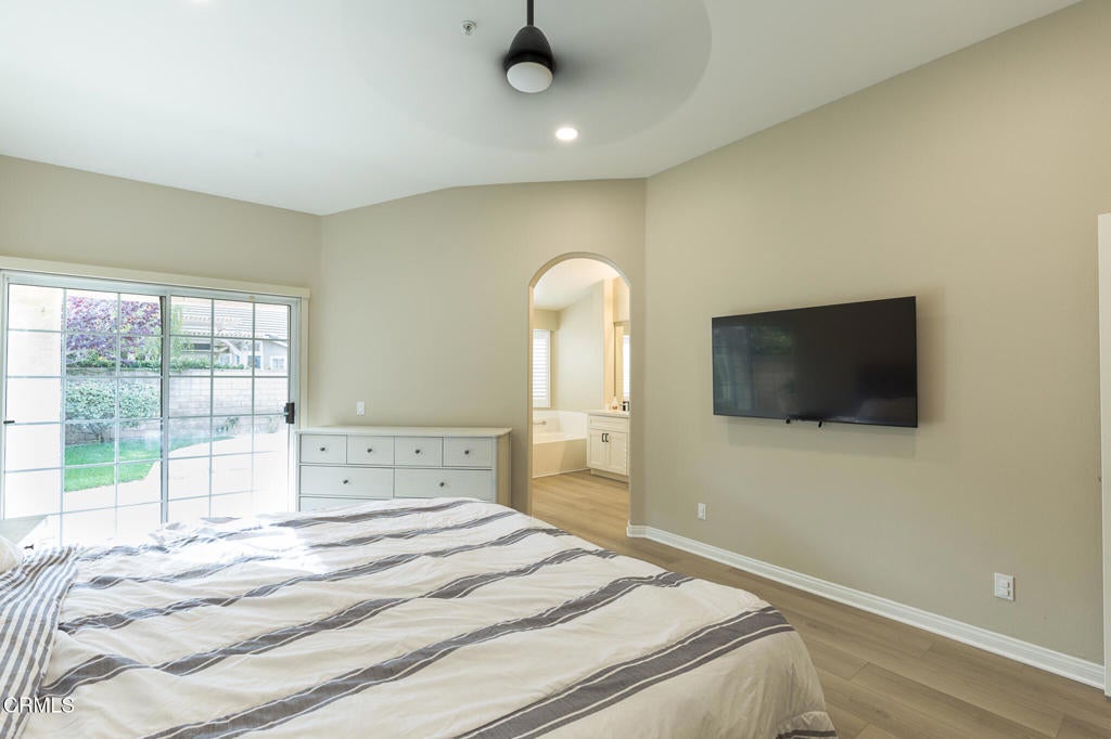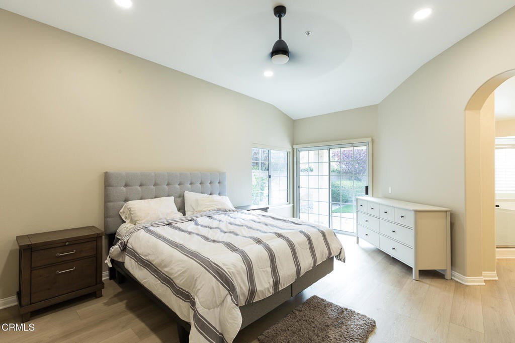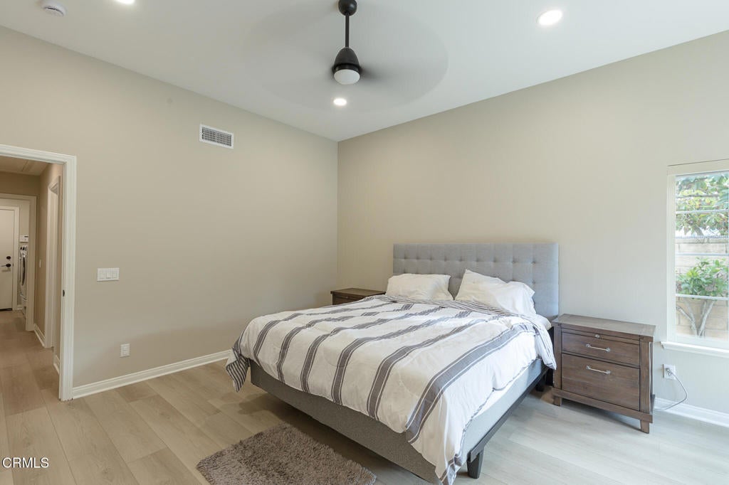 Ceiling Fan(s), Eat-in Kitchen, High Ceilings, Quartz Counters, Recessed Lighting, All Bedrooms Down, Main Level Primary, Walk-In Closet(s)