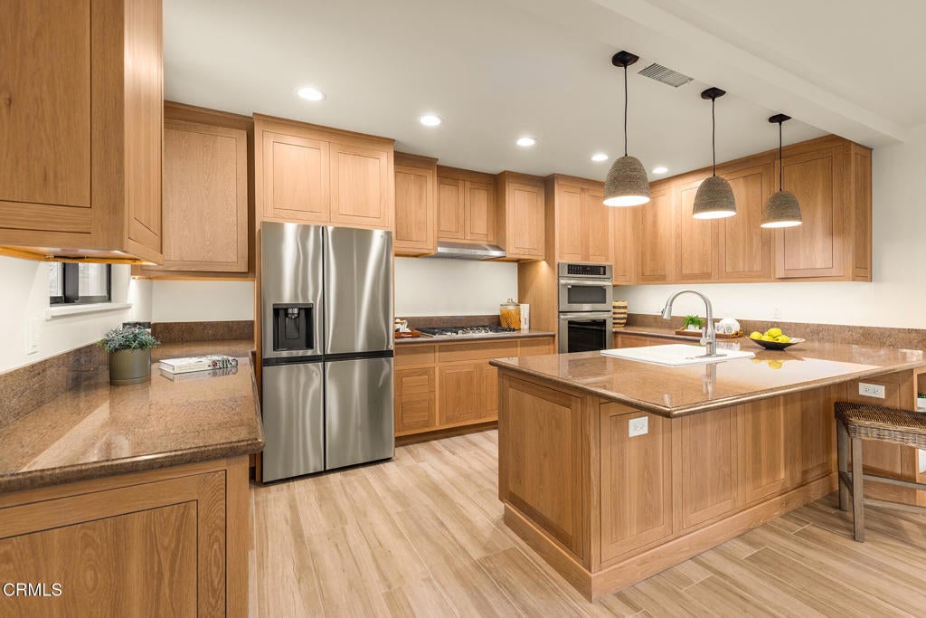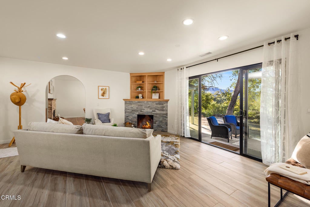Nestled in the highly desirable Arbolada neighborhood, just moments from downtown and all essential conveniences, you'll find this beautifully remodeled 4-bedroom, 4-bath home on nearly a half-acre of oak-studded, picturesque land. New roof, new electrical, new plumbing, new ducting, new ADU and the list goes on and on! With its true Ojai charm, you'll feel right at home the moment you arrive. Step inside to discover a stunning open floor plan featuring a pristine chef's kitchen with stone countertops and custom cabinetry that flows seamlessly into the inviting living and dining areas. Large windows and doors open to the private backyard oasis, creating the perfect indoor-outdoor living experience. Cozy up by one of the two fireplaces on cooler days, or entertain friends and family in this effortlessly comfortable and elegant space.Need extra room for guests, in-laws, or a home office? The attached ADU is the ideal solution--beautifully appointed and ready for any use. The detached oversized garage offers even more versatility, perfect for a workshop.Retreat to your luxurious primary suite, complete with a spa-like bathroom and a private deck overlooking the mountain views, a perfect spot to unwind and soak in the serene Ojai setting.Experience the best of Ojai living in this exceptional home that perfectly blends comfort, style, and tranquility!