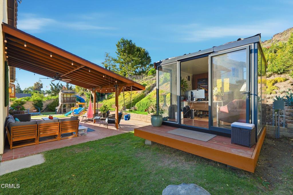 Welcome to Wildwood Living at Its Finest!Nestled in the heart of Thousand Oaks' coveted Wildwood neighborhood, this beautifully upgraded 4-bedroom, 3-bathroom home offers 2,150 sq. ft. of thoughtfully designed living space with comfort, flexibility, and charm in every detail.Step inside to discover rich wood flooring throughout, an updated kitchen, and a bright, open floor plan that's ideal for family living and entertaining. The downstairs suite has been perfectly designed for multi-generational living or potential rental income -- featuring a Murphy bed, private entry through the garage, access to the laundry room, and a door that can be closed off for complete privacy.Enjoy the best of outdoor California living in your beautifully landscaped backyard retreat. With artificial grass, a wood pergola for shade, and plenty of space to entertain, this yard was made for gatherings. Venture up to your custom wood deck on the hill -- the perfect spot to relax with morning coffee or unwind with a glass of wine while taking in peaceful hilltop views.Working from home? You'll love the detached outdoor office complete with electricity -- offering both comfort and privacy.Additional features include a 3-car garage, RV access with custom gate and fencing, and proximity to award-winning schools, scenic Wildwood hiking trails, parks, and shopping.This home truly checks every box -- versatile layout, modern upgrades, and an unbeatable Wildwood location.