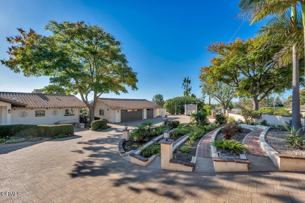 Perched in the prestigious Las Posas Estates, this remarkable hillside residence captures sweeping views of the city, mountains, and ocean--creating an entertainer's paradise in an atmosphere of tranquility and sophistication. Nestled on a quiet cul-de-sac street, this custom-designed home seamlessly blends refined elegance with effortless comfort. The main level features three spacious en-suite bedrooms, with the primary bedroom designed to take advantage of the home's stunning vistas. The gourmet kitchen is a culinary dream, showcasing a commercial-sized refrigerator and freezer, professional-grade gas range, walk-in pantry, granite countertops, and an inviting eat-at counter. Morning light pours through expansive windows, illuminating the open-concept living and dining areas that flow effortlessly to wrap-around decks--ideal for indoor-outdoor entertaining. The primary suite is a serene retreat with vaulted wood beam ceilings and dramatic picture windows framing the breathtaking views. Downstairs, a stylish speakeasy bar with tin ceiling plus bonus room with a dedicated powder room set the stage for memorable gatherings, while sliding glass doors open to a spacious patio complete with a firepit and outdoor lounge. Downstairs also includes a fourth bedroom or office plus a 3/4 bath. Film enthusiasts will enjoy the dedicated media room with cozy, oversized theater seating, a 96' screen, and projector. For car collectors and hobbyists, the property offers exceptional amenities--including a generous three-car garage, separate storage/workroom large enough to accommodate another vehicle, and a large gardening workshop in addition to an outbuilding with car lifts capable of accommodating up to six vehicles and its own solar system. Meticulously maintained and thoughtfully upgraded, the home features high-end amenities such as owned solar, EV charging, whole house back up generator, recirculating hot water, custom blinds, gutter guards, and paver driveways and patios. The circular driveway provides a grand entrance, complemented by space for RV or boat parking. Coming in at just over an acre, the property can accommodate extra cars, toys, and fun. Just minutes from Camarillo's premier golf clubs and conveniently located between Santa Barbara and Los Angeles, this one-of-a-kind estate offers unparalleled privacy, craftsmanship, and comfort--with views that inspire, and spaces that invite you to live beautifully.