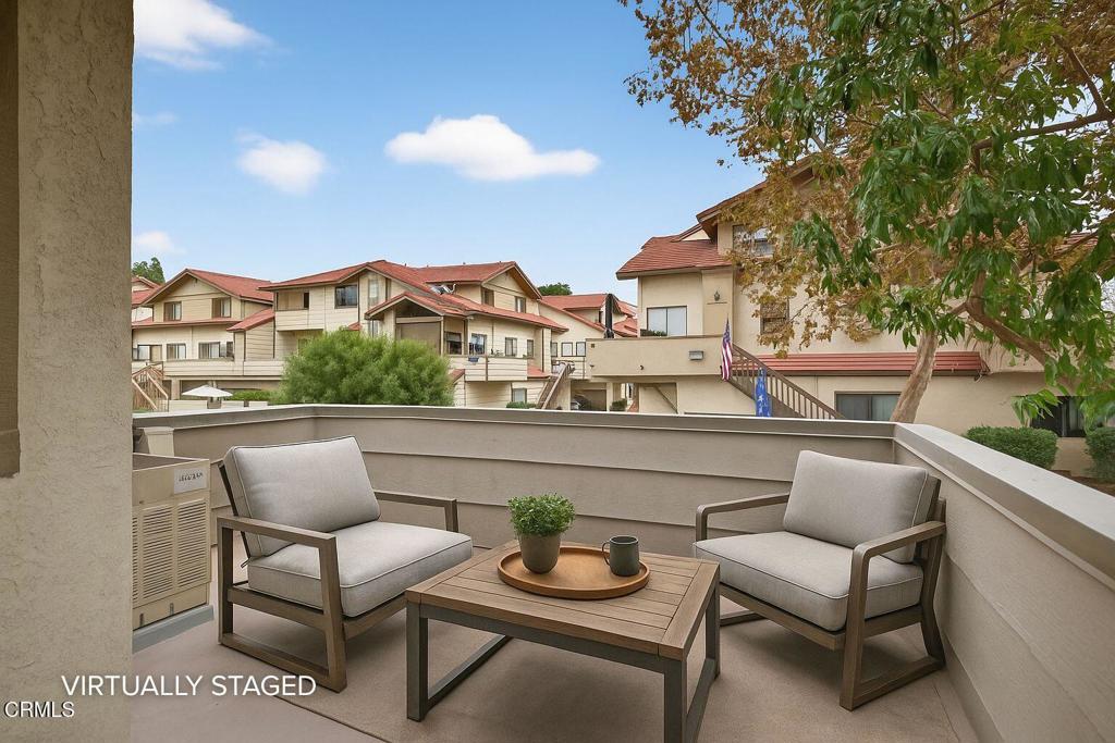 Welcome home to this light and bright Casa de Oaks townhome, situated in the heart of Thousand Oaks. Once you enter the home, you'll appreciate the updated kitchen, with new quartz counters and breakfast bar, light wood cabinetry with glass fronts, stainless steel appliances, and plenty of storage. The light filled garden window is perfect for plants and display. A powder bath and large storage closet is on this first floor level as well. Upstairs, there are 3 spacious bedrooms, 2 updated baths with coastal charm, and a hallway stackable washer/dryer. The primary bedroom has a private balcony to enjoy peaceful moments. A large wraparound balcony at the entrance is a great space for relaxing and entertaining. This unit comes with 2 owner designated covered spaces for parking. The community offers a refreshing pool and spa and an ideal location, close to shopping, dining, Thousand Oaks Civic Arts plaza, and the Gardens of the World.