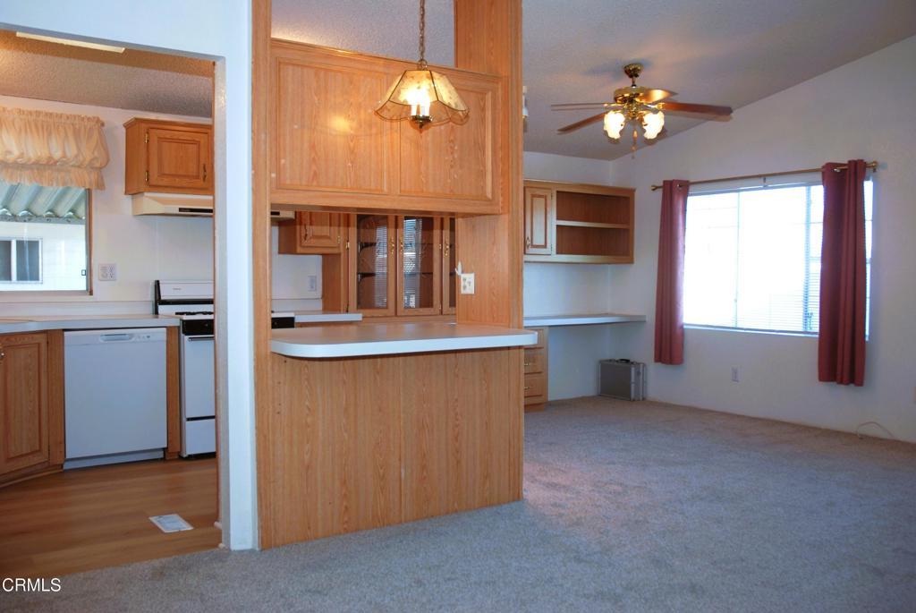 Super comfortable home in Camarillo's friendliest park! Home is located on a quiet cul-de-sac and features vaulted ceilings, skylights and drywall interior walls. New carpet, new paint, professionally cleaned. Beautiful oak kitchen cabinets and breakfast bar with etched glass panes. Office/Hobby room opens into a roomy living room full of natural lighting. Breakfast nook with ceiling fan opens to the kitchen with appliances included. stroll down the Hallway to your own Laundry Room with washer and dryer included. Hall Bathroom with tub and shower across from separate bedroom. Primary Bedroom has its own bath with low entry lip and shower. Park includes clubhouse with kitchen, pool, spa, R.V. storage and car wash bays for all you do-it-your-selfers! Home was built in 1993 so lender requirements are much easier than older homes. Come enjoy one of Ventura Counties best kept secrets!