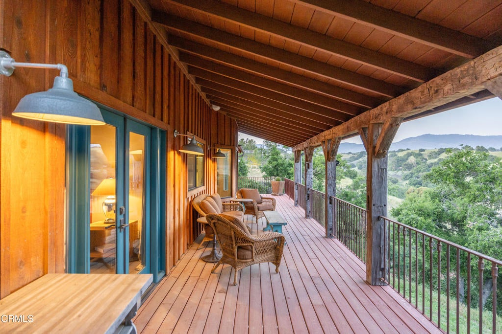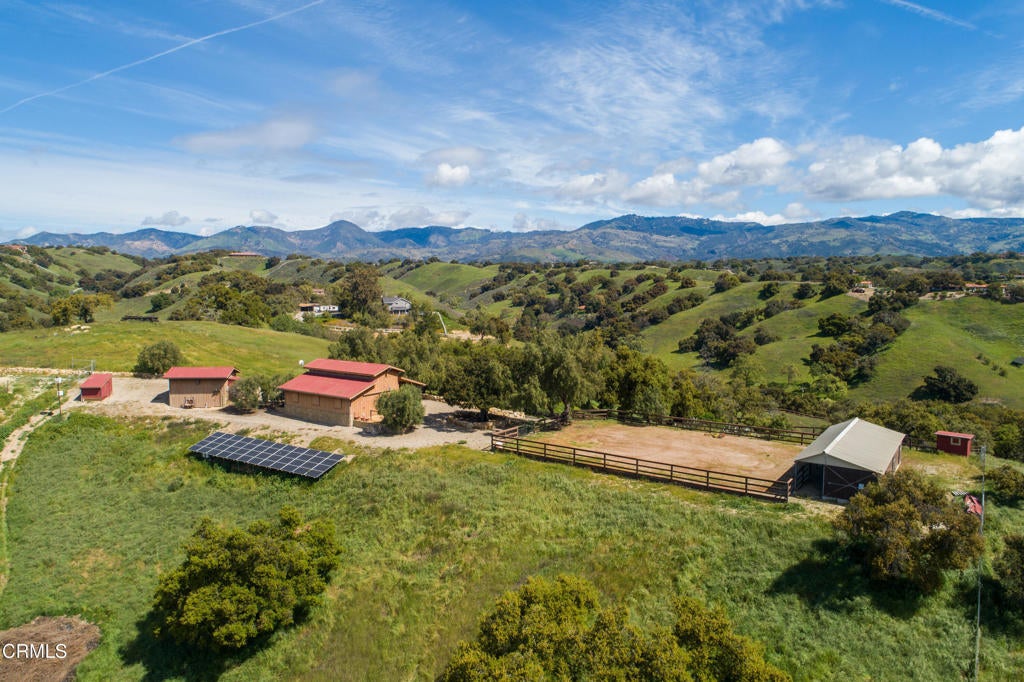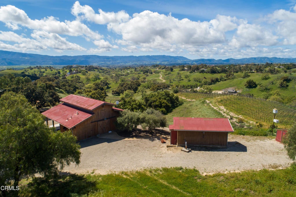 A romantic blend of luxury, sustainability, and ranch-style charm is offered onthis stunning 18.42+/- acre estate in the heart of the Santa Ynez Valley winecountry. Framed by stone walls and mature olive trees, the long paved drivewayslead you into a thoughtfully designed property where every detail has beenconsidered.The beautifully remodeled main house by contractor Mark Hemming features 3bedrooms, 3 bathrooms, and approx. 2,002+/- sq. ft. of inviting, elevated livingspace enhanced with reclaimed wood beams. A separate 1,200+/- sq. ft. 2bedroom, 1 bath casita offers comfort and privacy for guests, extended family orpotential income.Equestrian and agricultural amenities abound. The property's 2.5+/- acre vineyard,planted with Sauvignon Blanc and Cabernet Sauvignon for crafting your ownpersonal label, is complemented by a grove of olive trees used to produce yourvery own estate olive oil. An advanced water system, private well, and two 5,000-gallon cisterns support both the vineyard and daily ranch operations.The ranch includes fenced pastures, a foaling barn with 3 stalls, an arena, and acustom barn built with reclaimed wood beams, offering 3 more stalls, a half bath,and equipment storage. Car enthusiasts will appreciate the expansive 1,500+/- sq.ft. car barn.Eco-conscious features include a solar energy system generating an average of800 kWh per month, along with FloLogic water shut-off valves on both homes forremote water management and protection. The well system and irrigation arealso equipped with wireless smart technology for added efficiency and control.Enjoy direct access to riding and hiking trails just beyond the gate, and immerseyourself in the serenity and beauty of this thoughtfully curated property. A trulyunique opportunity to experience elegant country living with modern comfortsand timeless style.