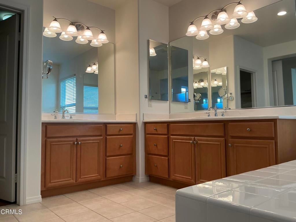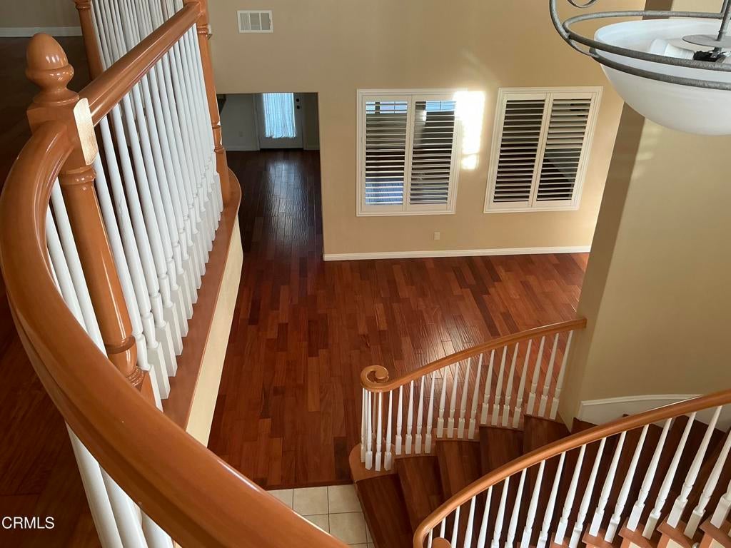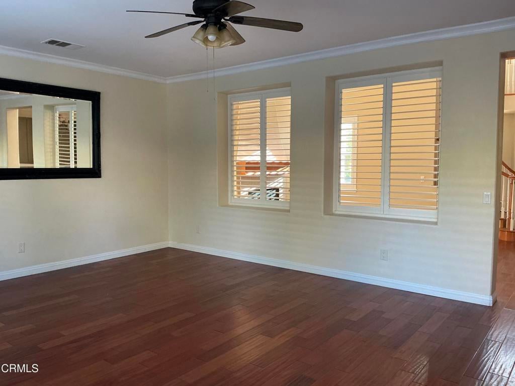 Welcome home to this spacious Moorpark Highlands, 5-bedroom, 4.5-bathroom home spanning over 3,960 square feet. Nestled in a gated community on a 9,582 square foot lot, this lovely home boasts dramatic high vaulted ceilings, a curve staircase, crown moldings, plantation shutters, recess lighting, elegant mahogany wood flooring, and a large formal dining room that flows to formal living room with a fireplace.The spacious kitchen features a large center island, ample counter space, newer stainless steel appliances, and an extensive eat-in kitchen area open concept to family room. The primary bedroom includes a walk-in closet, 2 separate sinks and a jacuzzi bathtub. There's also a one-bedroom downstairs with a full private bathroom, a secondary bedroom upstairs with a walk-in closet and a full private bathroom/shower, and a great open loft on the second floor.Beautifully landscaped front yard, backyard features fruit trees, a grassy area perfect for kids to run and play. The home is conveniently located close to community pool, spa and barbecue area, Mammoth Park, and walking trails.