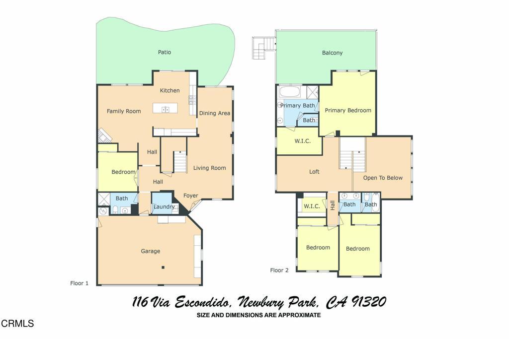 Looking for a property with land? Welcome to 116 Via Escondido, a unique home tucked away at the end of a cul-de-sac on an expansive 17,859 sq ft lot with a three car garage. Enjoy breathtaking mountain views, no rear neighbors, and the added privacy of block walls while relaxing in your custom PebbleTec pool and spa. A cozy outdoor fireplace creates the perfect ambiance for evening gatherings, and the spacious backyard is ideal for hosting family and friends. Off the primary bedroom, a custom covered deck provides a private retreat with direct access to the backyard. Inside, high ceilings and an open floor plan create a bright, airy feel. The kitchen flows seamlessly to the back patio, making entertaining effortless. One bedroom is conveniently located downstairs next to a full bath and laundry room, while upstairs you'll find three more bedrooms, two full bathrooms, and a versatile loft--perfect for a home office or second living area. One of the bedrooms even features an oversized closet that can double as extra storage or a fun playroom. This inviting home is within walking distance to Dos Vientos Community Park, Sycamore Canyon K-8 School, and nearby shopping, with scenic hiking trails just minutes away.