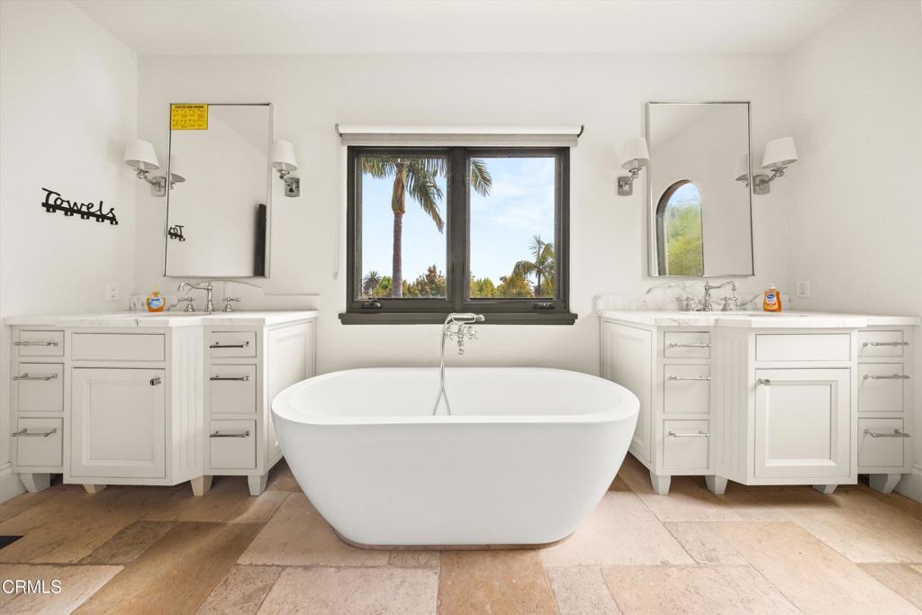 Gated Spanish Colonial Revival estate in Montecito's prestigious Pepper Hill neighborhood and Cold Spring School District. Set on .85 lush acres, the 4BD/3.5BA main residence offers nearly 3,850 sq ft of elegant, light-filled living with vaulted ceilings, a formal dining room, spacious kitchen with breakfast area, and a cozy family room. The living room opens through bi-folding glass doors to a stunning pool, spa, and multiple patios--ideal for indoor-outdoor living. A studio guest casita with full bath and a detached office with bath provide added flexibility. Moments from the Montecito Club, Rosewood Miramar, and both Upper and Lower Villages, this timeless retreat captures the essence of relaxed, refined Montecito coastal living.