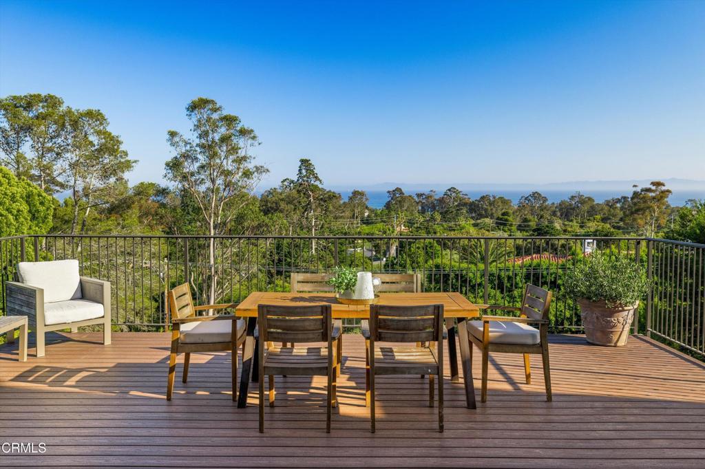 Located in Montecito's prestigious Pepper Hill enclave and within the Cold Spring School District, this elegant 4BD/3.5BA Tudor-style home offers over 4300 sq. ft. of beautifully renovated living space with panoramic ocean and Channel Islands views. The main-level primary suite includes a luxurious bath, walk-in closet, and private patio. Soaring ceilings, wide-plank wood floors, and fireplaces in both living and family rooms create warmth and charm. The open layout flows to an expansive ocean-view deck - perfect for entertaining. A gourmet kitchen with center island and breakfast nook, lush gardens with citrus trees, built-in BBQ, and a detached 2-car garage complete the offering. Minutes to beaches, the Montecito Club, hiking trails, and both Upper and Lower Villages.
