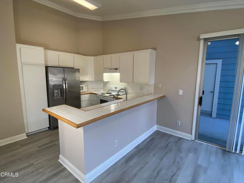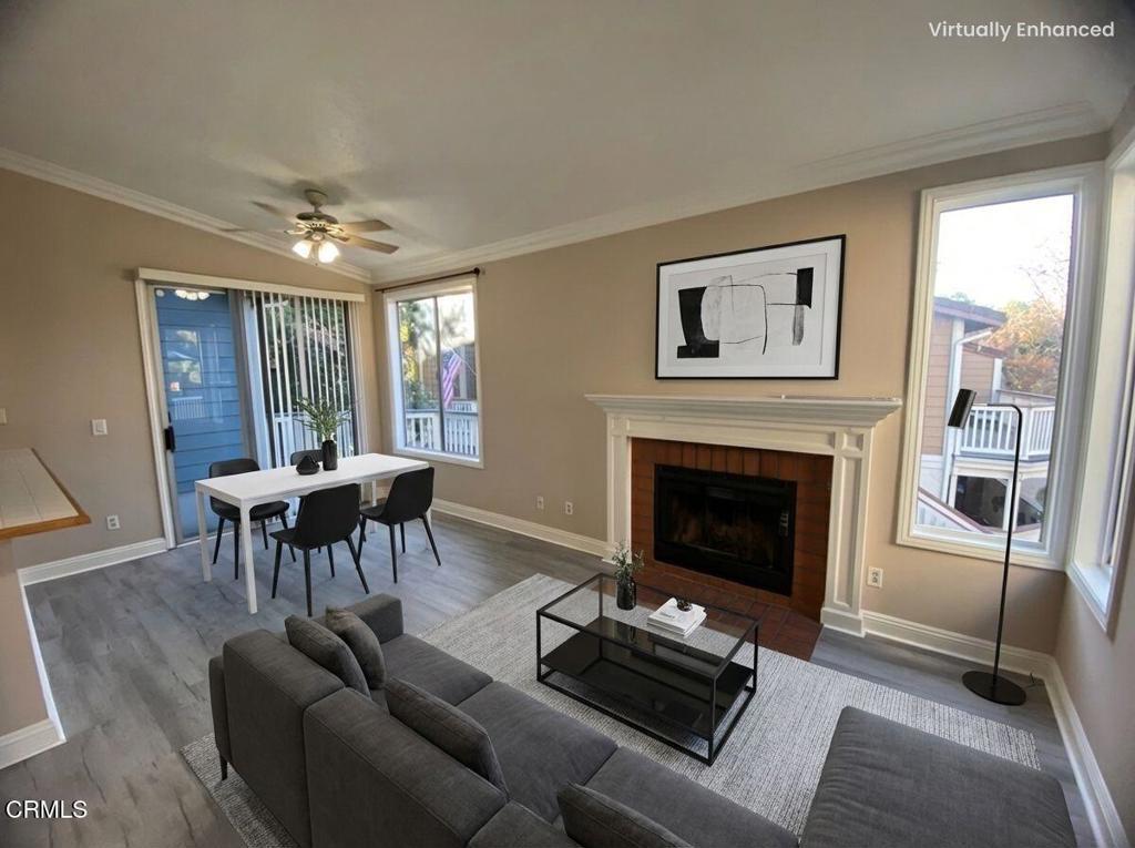 Stunning Upper-Level End Unit with Wrap-Around Balcony in the Heart of Thousand OaksDiscover the perfect blend of comfort, style, and convenience in this beautifully updated 2-bedroom, 11/4-bath upper-level end unit, located just moments from The Lakes, the Civic Arts Plaza, Gardens of the World, parks, coffee shops, and dining. This prime location offers peaceful living with unbeatable access to nearby amenities--one of the most desirable spots in Thousand Oaks.Step inside to a bright, open-concept floor plan featuring vaulted ceilings with crown molding, new flooring, fresh paint, and a welcoming fireplace that anchors the spacious living room. The kitchen opens seamlessly to the living and dining areas and includes bar seating and recessed lighting--ideal for cooking, entertaining, or enjoying casual meals.The generous primary bedroom features vaulted ceilings, a walk-in closet, private vanity area, and sliding glass doors leading to the expansive outdoor space. A spacious second bedroom--perfect as a guest room or home office--offers direct access to the upgraded shared bath with dual vanity areas and in-unit laundry.Your private wrap-around deck provides an incredible outdoor retreat--perfect for BBQs, al fresco dining, or relaxing beneath the surrounding trees.Community amenities elevate your lifestyle with a resort-style pool and spa, outdoor shower, changing rooms, dog park, and beautifully maintained grounds. A large park just across the street is ideal for morning activities, picnics, and playtime.The HOA covers water, hot water, trash, sewer, exterior maintenance, landscaping, and earthquake insurance, ensuring low-maintenance, worry-free living. The unit includes one assigned covered parking space plus ample guest parking.