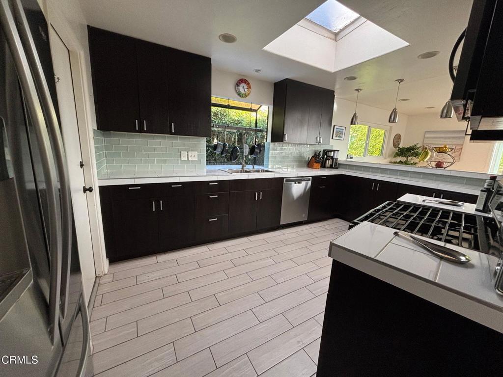Spacious and well-located, this beautiful, fully furnished 4-bedroom, 2.5 bath Mid Century Modern on an oversized barranca lot offers the perfect blend of comfort and convenience in a quiet Ventura community. This home is an entertainers dream. It boasts a split-level floor plan, expansive living room with dramatic floor to ceiling windows, cozy fireplace, primary bedroom suite with private deck, an additional deck off the dining room, bamboo flooring throughout, with recently updated Kitchen and bathrooms! The housing provider has recently added solar with battery backup and a level 2 charging station out front as well. The tranquil backyard setting truly makes this a one-of-a-kind property! Live just minutes from shopping, dining, schools, and the beach in one of Ventura's most convenient neighborhoods. Available as a short- or medium-term rental between Mid-January 2026 through Mid-June 2026 Schedule your tour today!