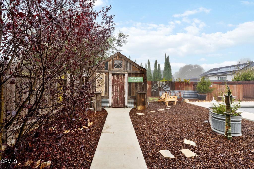 Discover the perfect retreat in this serene Santa Ynez neighborhood! This charming 4-bedroom, 2-bath home welcomes you with its grand entrance into a spacious great room featuring soaring wood-beamed ceilings and bright white walls. The stunning floor-to-ceiling rock fireplace and plentiful skylights create an airy, inviting atmosphere. Stylish hardwood flooring and authentic antique fixtures enhance the character of the home, while the open kitchen offers ample storage and functionality. The main floor hosts two guest bedrooms and a full bath, providing excellent flexibility for various living arrangements. Ascend to the upstairs primary suite, which boasts a generous bedroom with a large walk-in closet, an additional room perfect for a home office or gym with its own balcony ideal for sunset views, and a luxurious, fully remodeled bathroom that transforms daily routines into spa-like experiences. Step outside to enjoy meticulously manicured, drought-tolerant landscaping in the expansive backyard, complete with a sparkling pool and spa, a delightful She-Shed, and numerous gathering spots that are perfect for entertaining family and friends against the backdrop of breathtaking sunsets. Recent upgrades include two new sets of French doorsone opening to a private patio and the other to the poolalong with a new roof, heating system, and more. Embrace the charming farmhouse lifestyle just a 5-minute walk from all the amenities Old Santa Ynez has to offer. This home is not only spacious and comfortable but also includes a workshop for the creative enthusiast! This home is not only spacious and comfortable but also includes a workshop for the creative enthusiast!