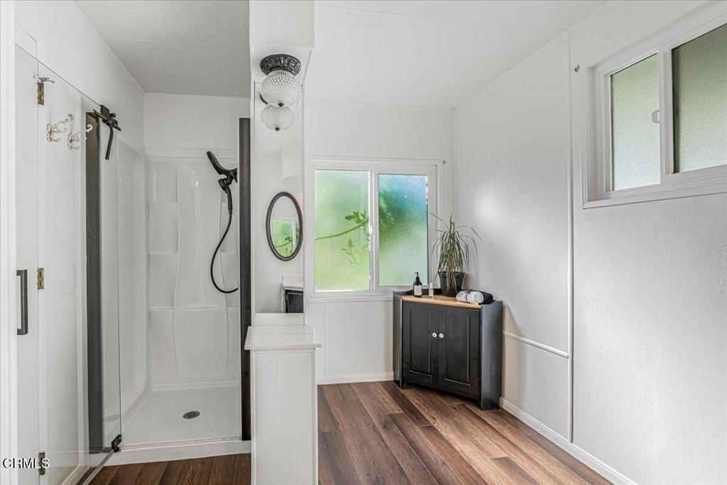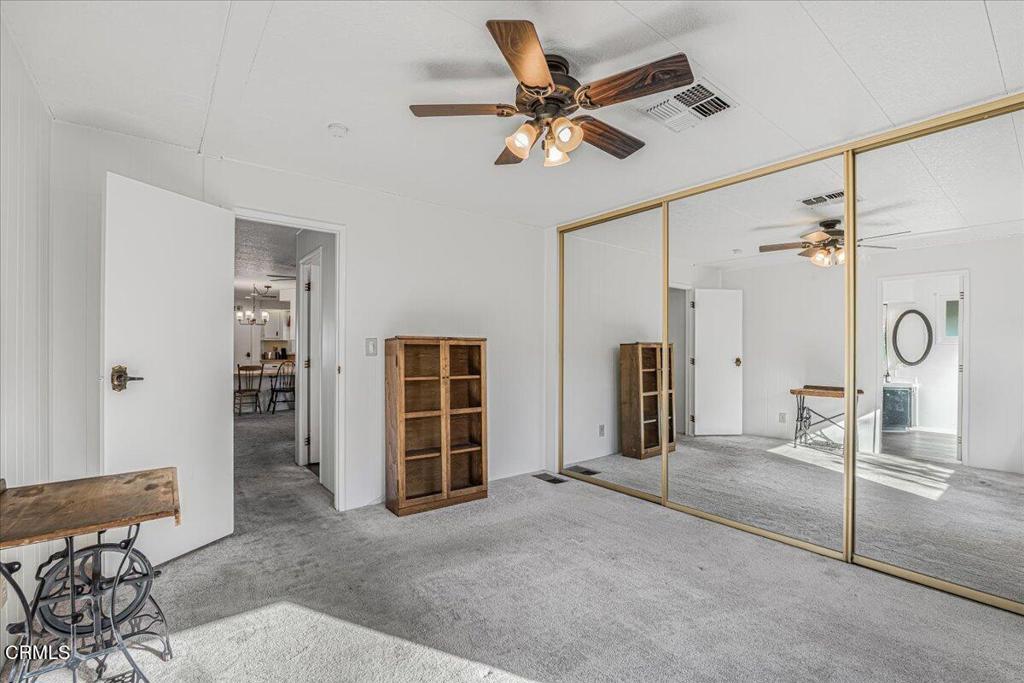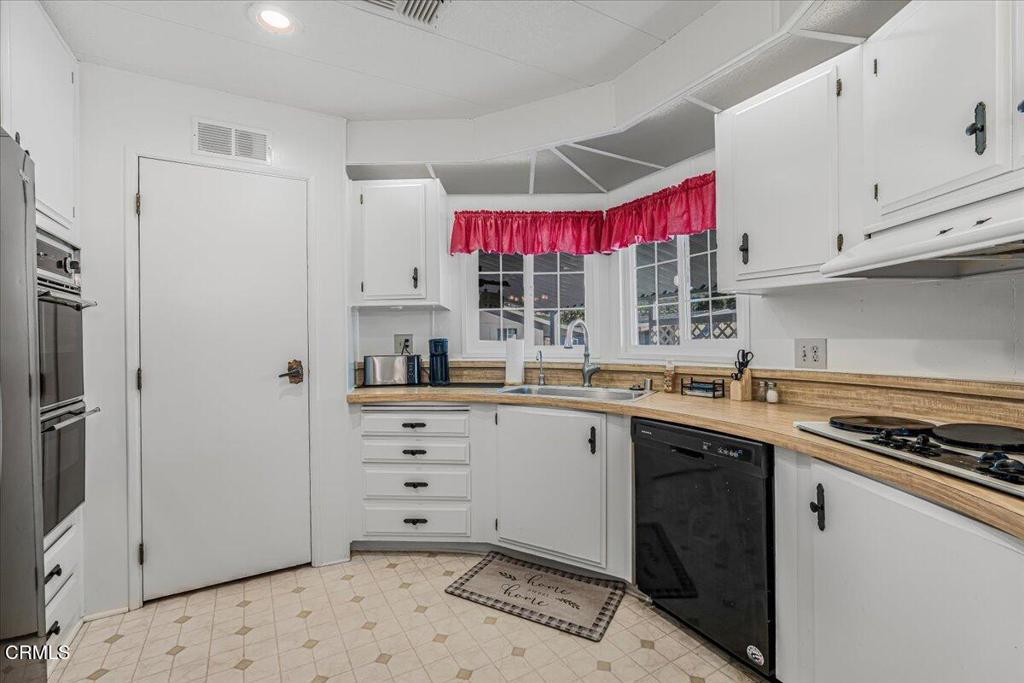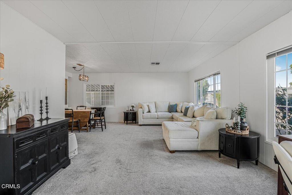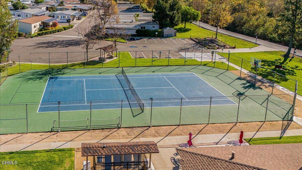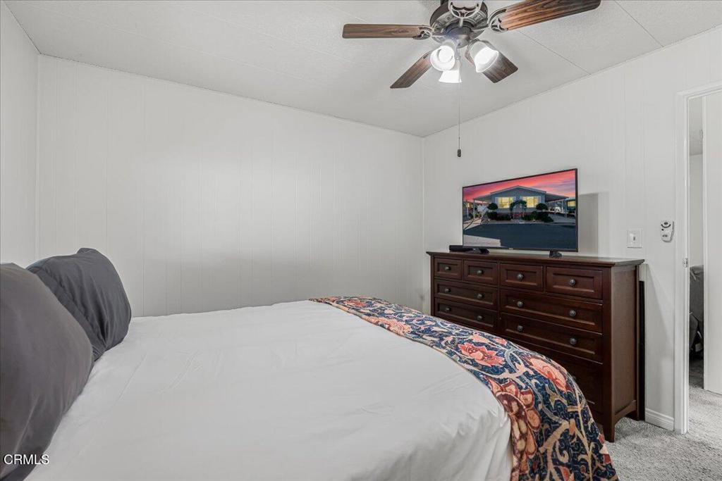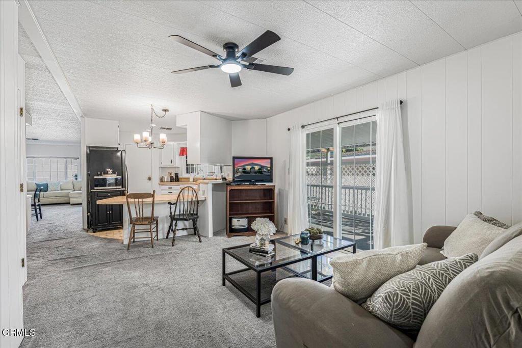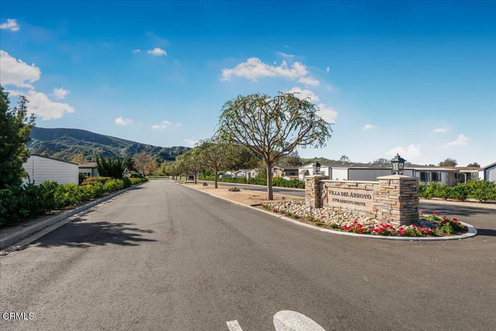 Clean and inviting mobile home with great curb appeal and abundant natural light. This spacious home features both a living room and a family room, offering plenty of space for relaxing and entertaining. The kitchen opens seamlessly to the family room and includes Insta-hot water at the sink. A sliding door leads to a newly built covered patio with new stairs and newly installed porch railing/fencing, opening to a beautifully maintained backyard with brick flooring, blooming roses, a charming garden area, mature fruit trees, and a storage shed--perfect for indoor-outdoor living.The home offers two bedrooms and two remodeled bathrooms, plus a spacious laundry room with a built-in desk and a convenient closet door providing direct access to the attached covered two-car carport. Additional upgrades include a new water heater.Located in the desirable Villa Arroyo family park, residents enjoy resort-style amenities including a clubhouse with a fireplace and game rooms, pool and spa, tennis courts, and scenic walking trails just outside the backyard.This home is move-in ready and waiting for your final touches to make it your own. Schedule a showing today!
