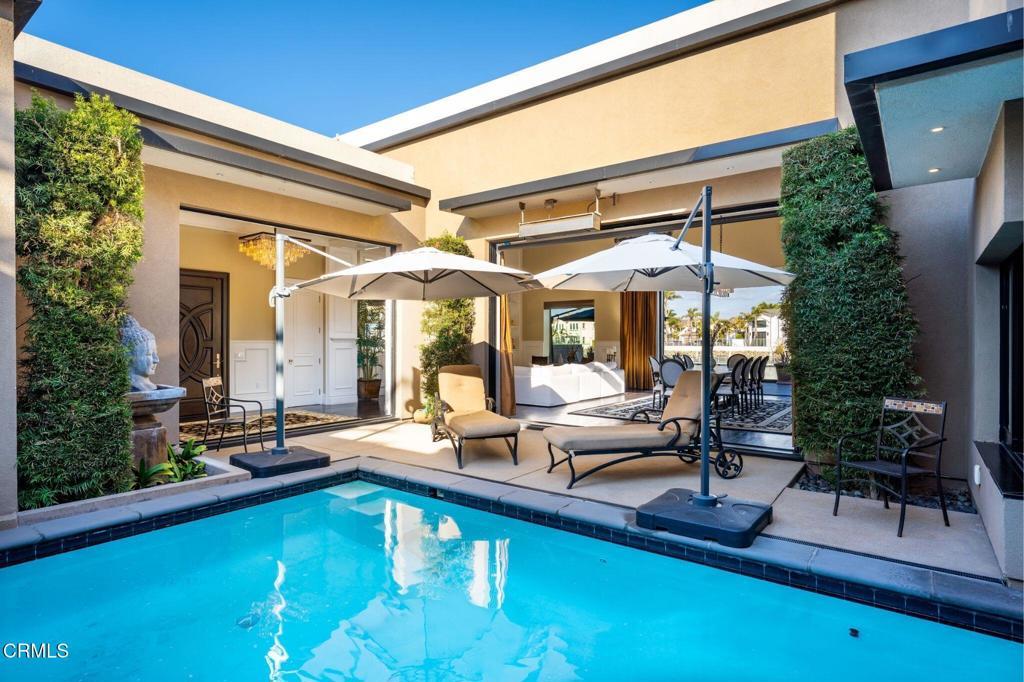 Welcome to your luxurious, furnished waterfront home on the Channel Islands Harbor!This stunning 2-story residence features 3 bedrooms and 3.5 bathrooms each with their own split ac/heating units, designed for those who appreciate high-end living with breathtaking water views.Step into the open concept living area, where floor-to-ceiling glass windows invite natural light and showcase the picturesque harbor. The kitchen is a chef's dream, adorned with beautiful white cabinetry that perfectly complements the space. The living room features 15ft ceilings, elegant built-ins flanking the fireplace, adding a touch of sophistication.The primary bedroom is a true retreat, offering a Cal king-sized bed and an en suite bathroom equipped with a luxurious tub, walk-in shower, and dual vanity. Enjoy seamless access to the private pool and spa from the entire home, creating an ideal setting for relaxation and entertaining.The additional master bedrooms feature another Cal king and 2 queen beds, providing ample space for family or guests. This home is equipped with modern amenities, including air conditioning, solar power, an alarm system, smart TVs, a lifesource water purifier and a tankless water heater for your comfort.Pet lovers will appreciate that the home is dog-friendly (no cats allowed), and there is garage parking for one car, along with plenty of driveway parking. Please note that this property does not have a boat dock.A flat rate utility charge of $1500 applies- Tenant responsible for over charges. Don't miss this incredible opportunity to live in luxury by the water--schedule your viewing today!**Requirements for all 30-day rentals:All reservation, 30 nights and longer, MUST be booked over the phone*Online application -Credit check/ background check requiredAny reservations for 30 nights or longer may be subject to price change*Summer/Winter may vary in prices*Cleaning Fee/Booking Fee*Monthly Utility Fee*Security Deposit equal to monthly rent or higher*Renters insurance required***DISCLOSURE!!This home is a FULLY FURNISHED (*MONTHLY*) RentalOur *MONTHLY* Rental prices are SUBJECT TO CHANGE for both SUMMER and WINTER monthsSummer months (JUNE, JULY, AUGUST) Prices expected to *INCREASE*Winter months (SEPTEMBER-MAY) Prices expected to *DECREASE***PLEASE CALL FOR PRICING