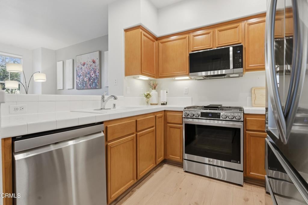 Set within Bridgeport, Valencia's premier lake community, this upgraded 3-bedroom townhome pairs modern smart-home features with an unbeatable, walkable location.Inside, a bright open-concept layout is enhanced by upgraded flooring, fresh interior paint, recessed lighting, and generous living spaces designed for everyday comfort. The kitchen has been thoughtfully updated with all-new smart appliances, offering both style and functionality. A smart garage system adds convenience and security, while the private two-car, side-by-side garage provides valuable storage and flexibility.Upstairs, the spacious primary suite serves as a comfortable retreat, with secondary bedrooms ideal for guests, a home office, or growing households.What truly sets this home apart is its location. Just minutes from shopping, restaurants, and daily essentials, and walking distance to the Bridgeport pool, clubhouse, and scenic lake, you're positioned to enjoy the best of the community right outside your door. Miles of walking and biking paths, community gatherings, and that signature lake lifestyle create a setting that's both active and connected.And with no Mello Roos, the value becomes even more compelling.Low-maintenance living. Smart upgrades. Prime Valencia location.