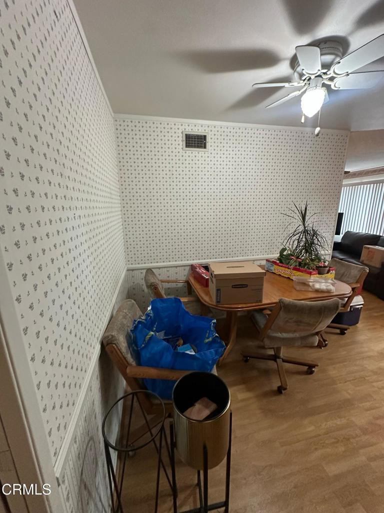 Great home is located in a residential area of Simi Valley and sits on a 10,454 sq. ft. lot. Inside you will find laminate flooring throughout and a living room that includes a fireplace and neighborhood views.The dining area is positioned next to the living room with lots of natural light. The kitchen features lots of counter space ideal for the chef in the family. A carpeted dining nook with French-style windows looks out onto the backyard.With four bedrooms and two full bathrooms, this home offers enough space for a variety of uses.Outside, the backyard is fairly large and open, providing room for outdoor use. A covered patio is included, along with a two-car garage for parking or storage.The home is close to local schools, parks, hiking trails, and other everyday amenities found around Simi Valley.