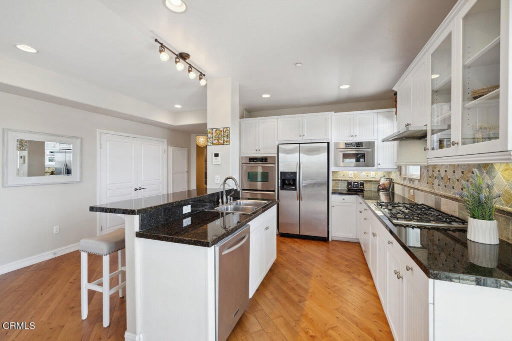 Coastal Elegance with a Front-Row Seat to the Harbor! Proudly, we present, one of the best water views in Port Marluna for you and your family to call your own! Welcome to your exclusive Marina retreat, where breathtaking water views meet refined coastal elegance. Nestled within the prestigious, enclave of Port Marluna at Seabridge, this pristine single-level residence offers a sophisticated blend of luxury, convenience, and unparalleled marina living. Step inside to enjoy wonderful marina views, custom window treatments, and premium flooring that complement the home's airy, open-concept design. The chef's kitchen is delightful, featuring sleek granite countertops, a full designer backsplash, an expansive island with breakfast bar, stainless steel appliances, a double oven, and ample storage--perfect for entertaining or enjoying quiet waterfront mornings or evenings. Indulge in the serenity of your private deck, where you can sip your morning coffee or unwind in the evening as boats, kayakers, and paddle boarders pass by. Whether you're strolling along scenic harbor paths, dining at upscale waterfront restaurants, or setting sail for the Channel Islands, this is resort-style living at its finest. The world-class Seabridge community offers a wealth of amenities, including a state-of-the-art fitness center, a year-round heated pool and spa, an elegant clubhouse with a caterer's kitchen, an outdoor barbecue lounge, and a tranquil yoga and meditation studio. Every detail has been designed for effortless luxury and relaxation. More than just a home, this is an invitation to an exclusive coastal lifestyle--one that many dream of, but few attain. Seize this rare opportunity to own a piece of paradise in the heart of the Channel Islands Harbor. Rarely does a property of this caliber come to market. Welcome home to Seabridge!