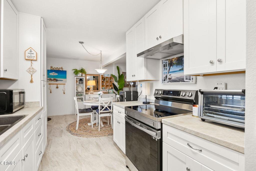 Welcome to Anacapa View, a highly sought-after beachside community perfectly situated between Santa Barbara and Malibu. This adorable single-level condo is just minutes from the sand and offers effortless coastal living.This ground-level, beautifully remodeled residence blends comfort, style, and affordability--making beach living more attainable than ever. The updated kitchen features bright shaker-style cabinetry, new countertops, sink, appliances, and a new water heater, complemented by custom vinyl and tile flooring throughout for a clean, modern coastal feel.The primary bedroom enjoys direct views of the pool and spa and connects seamlessly to a tastefully remodeled en-suite bathroom, creating a serene, spa-like retreat. Just outside the primary bedroom is a versatile bonus space, ideal for a home office, nursery, or guest sleeping area.Step outside to your private patio, which opens directly to the gated pool and spa area, extending your living space and enhancing the resort-style atmosphere. The community is in the process of becoming fully gated, offering added privacy and security.Centrally located near shopping, dining, parking, and the beach, this home checks all the boxes for a full-time residence, weekend getaway, or investment opportunity.Don't let this rare and affordable beachside opportunity slip by.