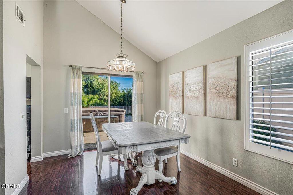 Located in Ventura this well-appointed 4-bedroom, 2.5-bath home offers an ideal blend of comfort and functionality. The kitchen opens to the family room and wet bar, creating a welcoming space for everyday living and entertaining. The living room features soaring vaulted ceilings, enhancing the home's open and airy feel.Plantation shutters are featured throughout the first floor and the primary bedroom. The kitchen offers granite countertops and backyard views of mature fruit trees, including cherry, passion fruit, apricot, pear, plum, and grapevines, with scenic views of the Topa Topa Mountains beyond.Additional highlights include wood- like flooring throughout the first floor, vaulted ceilings, and a gas fireplace in the family room. Conveniently located near top-rated Ventura schools, this home presents a wonderful opportunity for comfortable Southern California living.