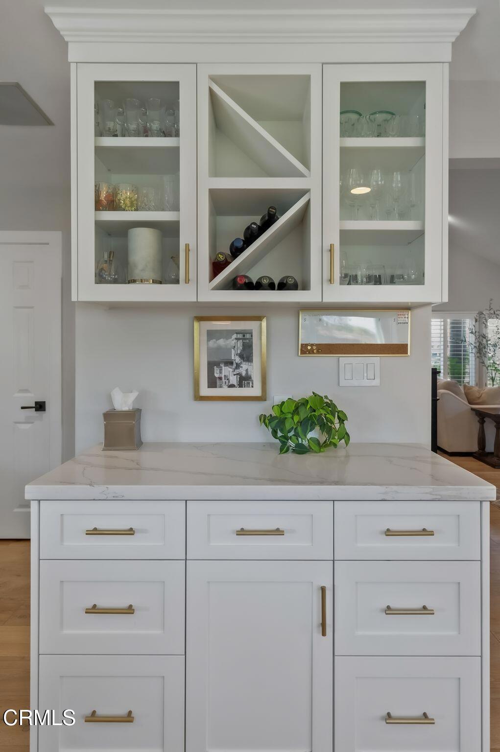Discover this beautifully upgraded 3-bedroom, 2.5-bath home in the prestigious Wood Ranch community of Simi Valley, an exceptional turnkey residence blending timeless style with modern comfort.Enter through elegant double doors into a light-filled interior featuring vaulted ceilings and genuine hardwood floors throughout. The inviting living room is anchored by a dramatic custom rock fireplace with built-ins, while the open-concept layout flows seamlessly into the dining and family areas, enhanced by designer accents and large windows overlooking the private backyard.The fully remodeled gourmet kitchen is a chef's dream, showcasing custom cabinetry with brushed-gold hardware, sleek quartz countertops, stainless steel appliances including a gas range and built-in microwave, under-cabinet lighting, breakfast bar, and integrated wine storage, perfect for entertaining and everyday living.Every bathroom has been luxuriously updated with spa-inspired finishes. The primary suite offers a peaceful retreat with ceiling fan, serene hill views, and direct access to a versatile flex space ideal for a home office, expanded closet, or nursery. The primary en-suite features a frameless glass walk-in shower with dual rainfall and handheld fixtures, built-in bench, and elegant marble accents.Step outside to an expansive private backyard oasis with citrus, avocado, and pomegranate trees, premium vinyl fencing, secure side gate, and a covered gazebo, set directly across from a lush avocado orchard for exceptional privacy.Highlights include: remodeled kitchen and baths, near-new energy-efficient tile roof, vaulted ceilings, recessed lighting, custom fireplace with built-ins, versatile flex space with custom cabinetry, low HOA of approx. $40/month, attached two-car garage with direct access, and indoor laundry.Ideally located near Wood Ranch Open Space and miles of scenic trails, with easy access to shopping, dining, parks, and the Ronald Reagan Presidential Library. Convenient to both the 118 and 101 freeways--each under 10 minutes away.A rare opportunity to own a beautifully updated home in one of Simi Valley's most desirable neighborhoods.