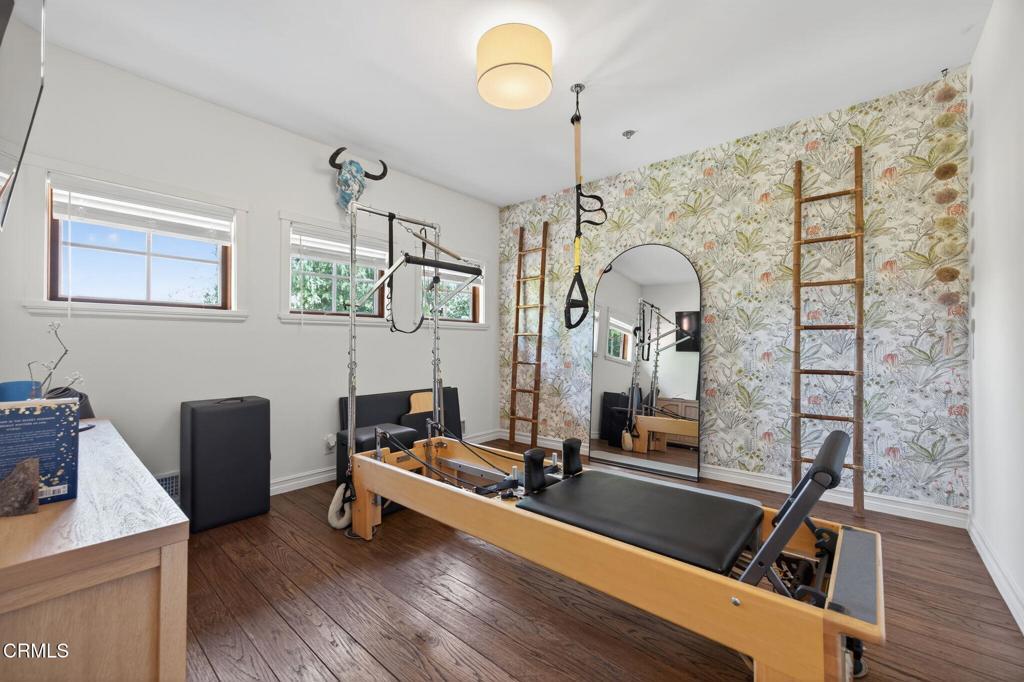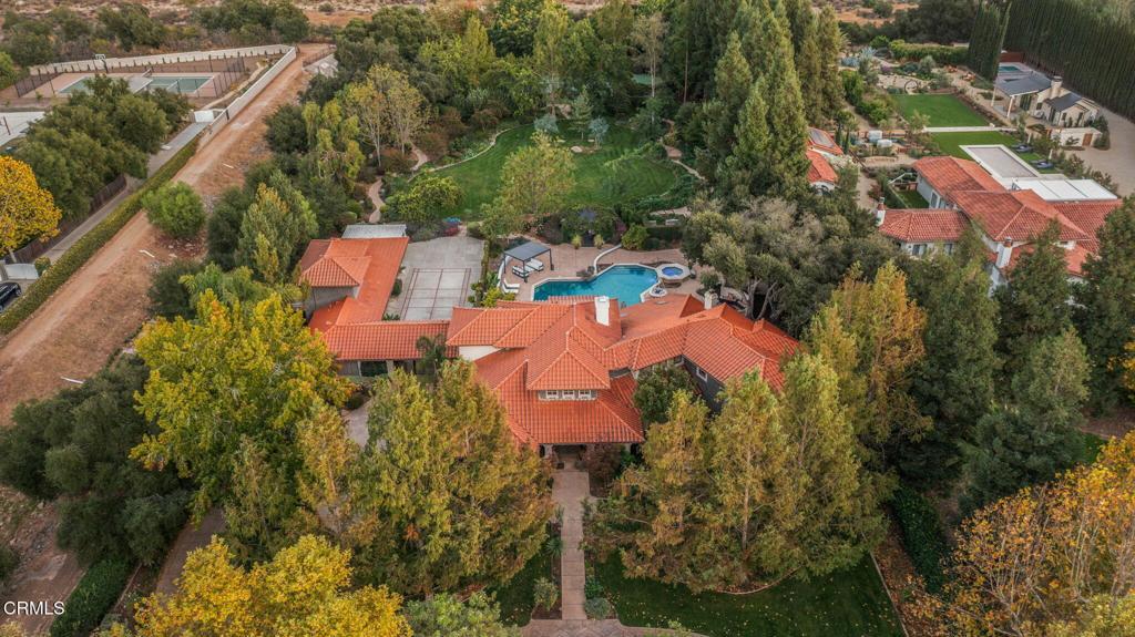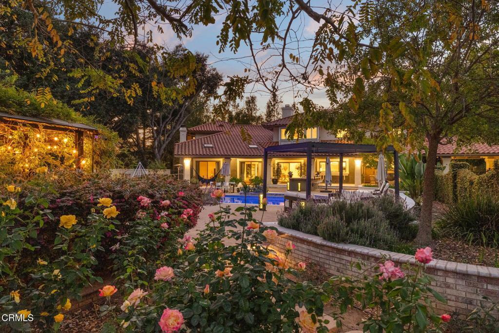 Welcome to your personal utopia, nestled in the exclusive gated community of Rancho Matilija in the beautiful Ojai Valley. This property offers a private sanctuary of absolute bliss. Experience the famous ''pink moment'' sunsets from your custom estate. The main house features beautifully appointed rooms with exaggerated ceilings, three fireplaces (gas or wood burning), and elegant hardwood flooring. The layout is perfectly designed for entertaining, privacy, and warmth. Multiple living spaces and dining areas--both open and intimate--create a perfect harmony of elegance and function. A natural romance and ambiance flows through each beautiful space, both large and small, indoors and out. A separate guest house with stunning views includes a recreation room below, adding another layer of luxury. Enjoy the tennis and pickleball courts, as well as the private hiking trails. A private well sustains lush gardens and an organic orchard with apples, lemons, peaches, plums, persimmons, avocados, blackberries, and more! The additional outdoor amenities are equally impressive: a recently renovated pool, jacuzzi, sauna, outdoor kitchen, and charming paved walkways that wind through this dreamy compound. Cozy, built-in seating surrounds the fire pit, and an enchanting, covered gazebo draped in wisteria elevates the senses. Serenity at your fingertips. This property has all the hallmarks of a boutique resort, offering a unique blend of ambiance, character, and one-of-a-kind luxury living.