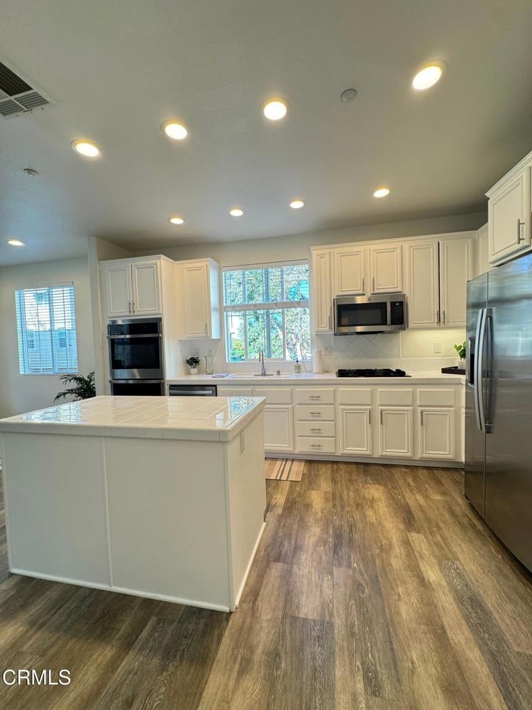 End unit townhouse with lots of windows and private, direct-access double GARAGE (rare!) located in gated Westport at Mandalay Bay near Mandalay Shores Beach! Here you can experience both beach and harbor lifestyles as you walk along the water to cafes, restaurants and shopping or take a swim in the ocean and sunbathe on some of the finest white sandy beaches in so Cal. Live amongst friendly neighbors out walking their dogs or taking kayaks, SUPs and boats out for fun. This impressive tri-level townhome has a step-down living room with15' ceiling, gas fireplace with raised hearth and two sets of French doors to a sunny patio. The main level features an open kitchen layout with island, dining area and family room, also a half bath and kitchen balcony. All three bedrooms and two full baths are on the top floor and the primary suite includes two walk-in closets, a large spa-like bathroom and another balcony. Recent updating includes new custom paint and baseboards throughout, newer carpet, LVP wood-like flooring and GE stainless steel appliances. A favorite feature is the abundance of natural light and a neutral color palette that's easy to work with as you make this your perfect vacation or full-time home! Heated pool and spa, too.