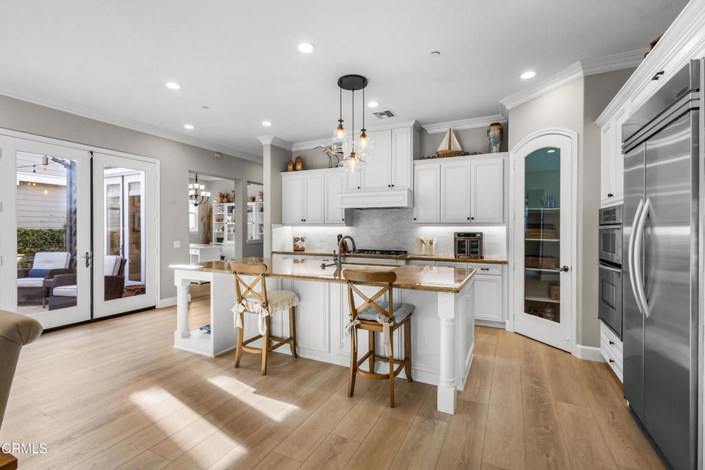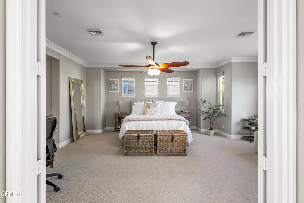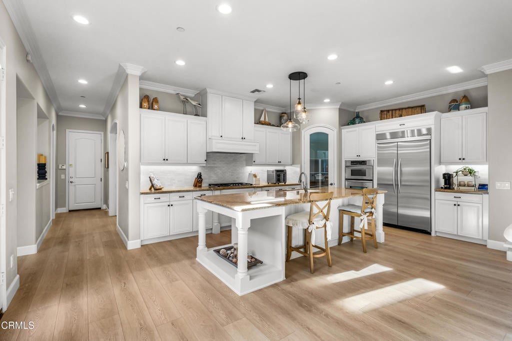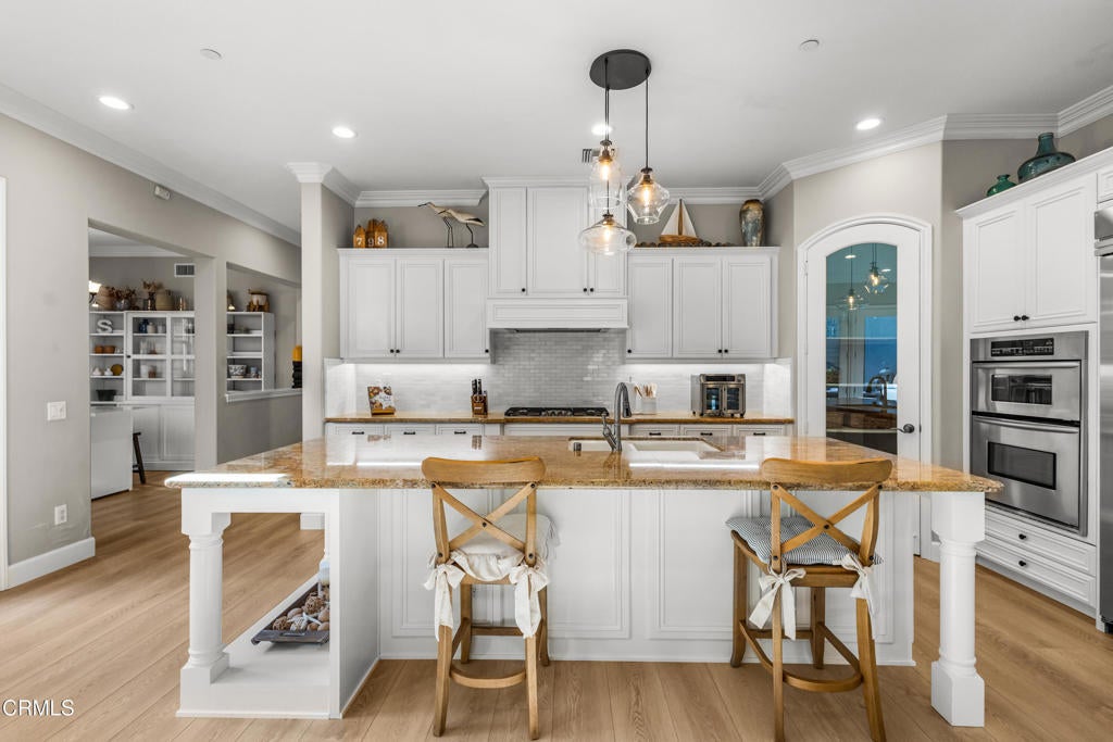 Beautiful Coral Island Home within the 24-hour guard-gated Seabridge community, this waterfront residence offers a refined coastal lifestyle defined by privacy, natural light, and thoughtful updates and your own private 35' boat dock. The home enjoys a calm, open setting with gentle water views from both the front of the property and the main living areas.Residents benefit from convenient access to the harbor and the surrounding neighborhood, with the ability to boat or walk to the beach, shops, dining, and everyday conveniences. Seabridge is widely regarded as the premier community in the harbor, offering security, wide channels, and a full suite of resort-style amenities.The home has been extensively refreshed with a focus on creating a bright, turnkey environment. Interior and exterior paint updates, new flooring throughout, and refreshed cabinetry establish a clean, cohesive aesthetic. Both secondary bathrooms have been remodeled with quartz countertops, updated tile surrounds, and modern fixtures, while the primary bath has been upgraded to enhance comfort and functionality. Custom closet built-ins complete the primary suite.The kitchen has been thoughtfully updated with quality appliances, new backsplash, under-cabinet lighting, and updated fixtures, creating a space that is both functional and inviting. Recessed LED lighting, ceiling fans, and select motorized window treatments enhance the home's natural light and ease of living.Outdoor areas have been reimagined for everyday enjoyment and casual entertaining, with an enclosed courtyard offering a bar-top seating area, fountain, and ambient bistro lighting. New exterior lighting further enhances the home's presence and evening appeal.Additional features include an EV charger, garage built-ins, and modern home systems that support comfortable, low-maintenance living.Residents of Seabridge enjoy access to a private clubhouse with pool and spa, fitness center, yoga and meditation room, BBQ areas, and walking paths throughout the harbor. Ideally located halfway between Malibu and Santa Barbara, this home presents a rare opportunity to enjoy turnkey waterfront living in a secure and amenity-rich coastal setting.