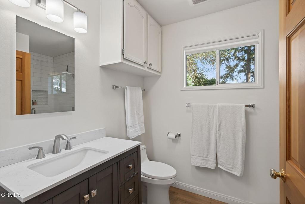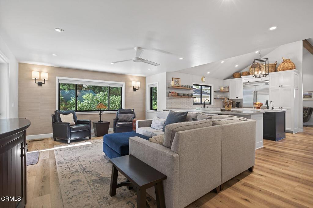 Thoughtfully renovated and designed for modern living, 207 E. Eucalyptus Street offers a rare combination of comfort, durability, and flexibility in the village of Ojai. The main residence spans 2,067 square feet with three bedrooms and two-and-a-half baths, featuring a primary suite on the main level and an open, functional layout ideal for everyday living and entertaining. Easy access to all of the shops, amenities and restaurants that Ojai has to offer. Completed in 2018, the renovation includes a raised and leveled foundation, owned solar, and a host of high-quality finishes such as quartz countertops, stainless steel appliances, steam oven and luxury vinyl flooring on the ground floor. Fire-conscious construction elements--noncombustible Hardie(r) siding, tempered glass windows, and limited exterior venting--provide added peace of mind, while thoughtful details like a dedicated laundry room with sink and a two-car garage enhance daily convenience. Set on an 8,443-square-foot zoned VMU, the property also features a beautifully appointed 860-square-foot guest house with its own address (207A), full kitchen, bedroom plus loft, and extended one-car garage. With separate utility meters for each residence, the setup is ideal for multi-generational living, rental income, or a private home office or studio. A rare opportunity to own a well-improved, versatile property that blends quality craftsmanship, smart upgrades, and exceptional flexibility--all in one compelling offering.