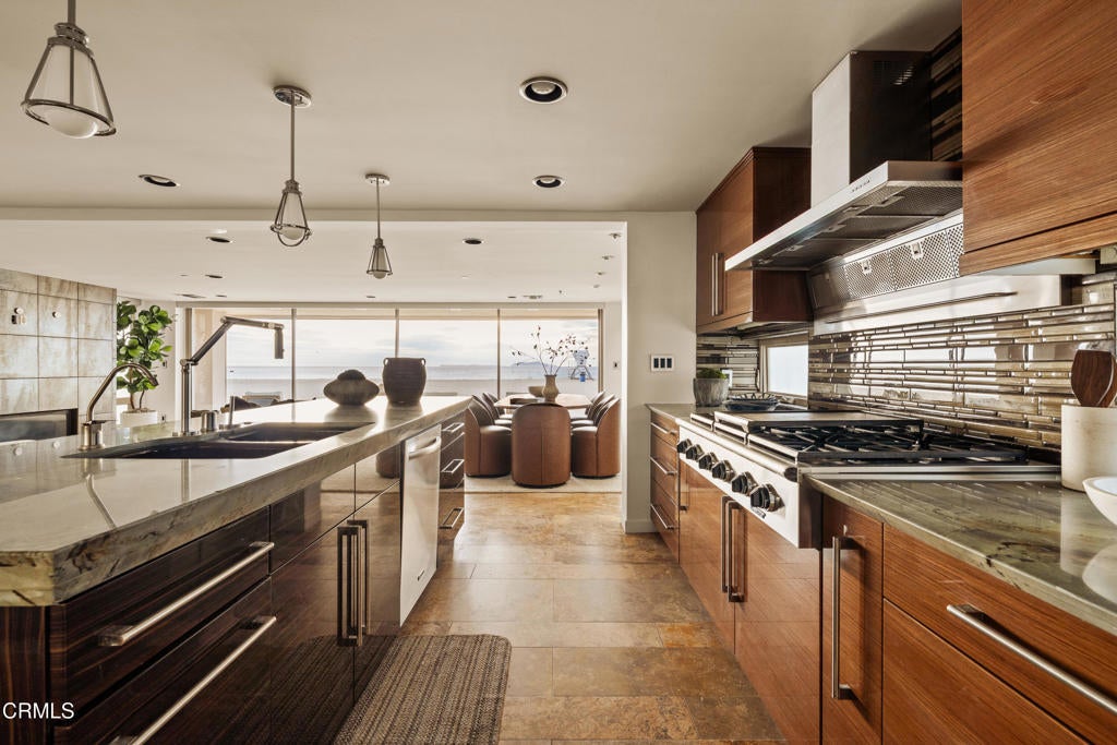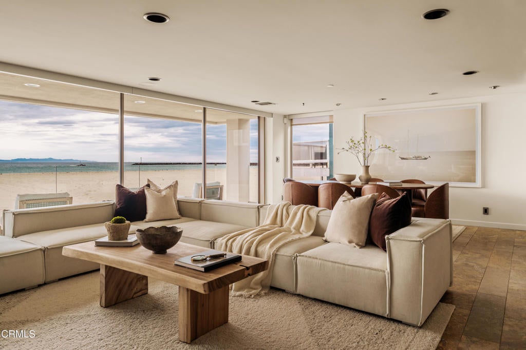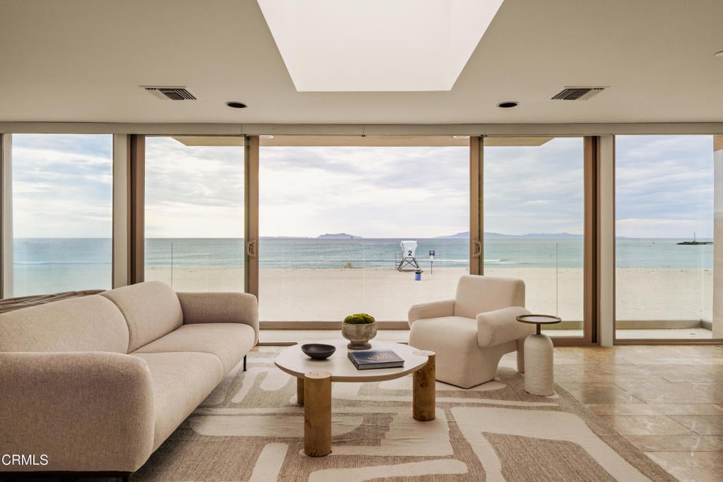 Set directly on the sand, this refined beachfront contemporary residence offers commanding, unobstructed views of the beach and the Pacific Ocean. Located in the highly desirable Silver Strand and custom-built by its only owner, the home is designed to emphasize light, scale, and seamless indoor-outdoor living delivering the quintessential coastal lifestyle in a truly front-row setting. The open-concept main living level is bathed in natural light and oriented toward sweeping ocean vistas, creating a sophisticated yet comfortable environment for everyday living and entertaining. The well-appointed kitchen features a generous center island with breakfast bar, stone countertops, and integrated stainless steel appliances, all thoughtfully selected to complement the home's clean, modern aesthetic. The residence comprises three bedrooms, including an expansive primary suite that serves as a private sanctuary. Retractable walls of glass open to an exclusive terrace, inviting ocean breezes and panoramic views into the space. Large outdoor terraces on every level extend the living areas, providing ideal settings for al fresco lounging and dining. On the lower level, a spacious bonus room offers versatile entertaining spaceperfect for a media room, game room, or separate guest apartment complete with a kitchenette and direct access to the sand, placing the beach just steps from your door. This is truly a once-in-a-lifetime opportunity to own a slice of the California Dream: a beach house on the sand, just minutes from Oxnard's best restaurants, shopping, and lifestyle destinations.
