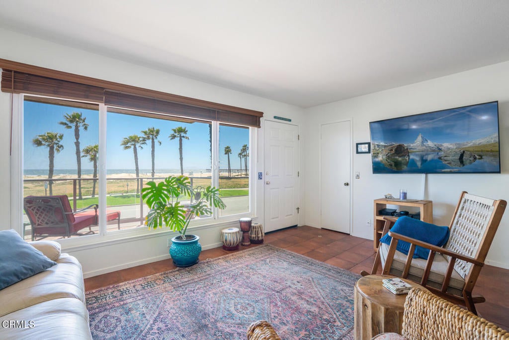 Don't let the size fool you--this coastal gem offers some of the most impressive ocean, island, and sunset views found along this stunning stretch of beach. Located on the second level, the condo's elevated position captures expansive panoramic views of the coastline.Inside, the open floor plan creates a light and spacious feel from the moment you enter. Oversized windows showcase the ever-changing ocean scenery and rolling sand dunes, filling the home with natural light. The living space connects effortlessly to the recently remodeled kitchen, which features natural wood countertops, a designer blue tile backsplash, and new appliances including a range, microwave, and dishwasher. A strategically placed mirror reflects the ocean view, making even meal prep a scenic experience.The dining area is ideal for hosting guests or enjoying peaceful meals while taking in the view. Recessed lighting throughout enhances the bright, coastal ambiance.The primary bedroom offers generous space and opens to a bonus room that works perfectly as a home office, reading nook, or creative space, along with ample closet storage. The bathroom adds charm with its Spanish-inspired design and spacious walk-in shower.Step outside onto your private ocean-view balcony to relax in the sunshine or enjoy unforgettable sunset moments. Residents also enjoy access to a community clubhouse complete with a pool, spa, and laundry facilities. From beach walks and local events to the laid-back charm of this quaint seaside community, this property captures the essence of coastal living.Beachfront living under $600,000-- a rare opportunity you won't want to miss!