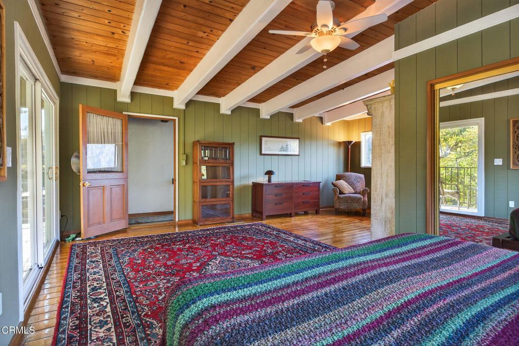 Set on over an acre of land, this exceptional 4-bedroom, 2-bath retreat offers impressive 180 degree mountain views and ultimate privacy. Surrounded by Oaks and lush garden space, the property feels worlds away while remaining conveniently located in between Ojai and Ventura.Set off the main road down a shared private driveway, the main residence features a large family room with abundant light and windows to capture the views, a cozy living room equipped with a wood burning fireplace, two office spaces, a bedroom and an upstairs primary suite with an outdoor deck. A separate detached guest space with its own private deck is positioned at the rear of the property making it perfect for potential rental income or extended family.Freshly painted inside and out, a newer A/C, updated electrical panel, a newer hot water heater and appliances, this home is ready for its next owner. With abundant space to enjoy the outdoors, entertain, or to relax and take in the views, this property incorporates the best of the Ojai Valley: privacy, natural beauty, and easy access to town, beaches, and amenities. A rare opportunity to own a tranquil mountain-view estate in a highly desirable location.