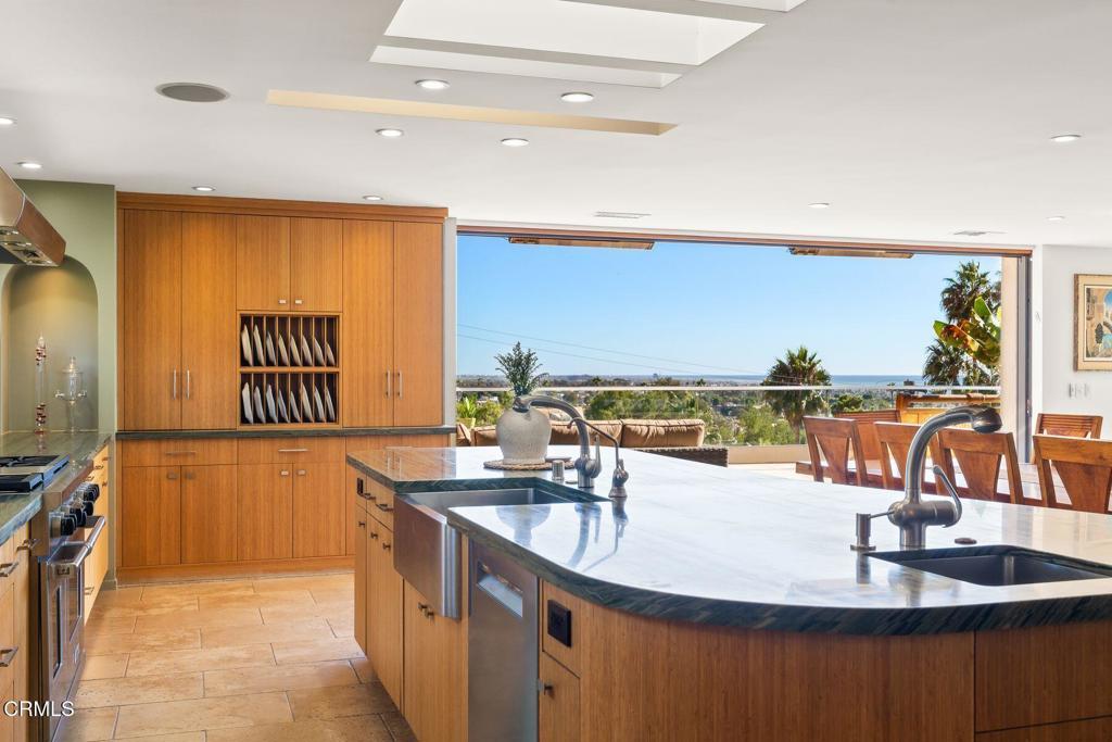 There's something magical about this hillside perch -- where ocean, island, and city views unfold in every direction and the rhythm of coastal living meets the calm of retreat-style design. 268 North Linda Vista Avenue captures everything we love about living here -- endless ocean views, effortless indoor-outdoor flow, and that signature sense of calm you can only find on this hillside.Set in one of Ventura's most desirable neighborhoods between Malibu and Santa Barbara, this property blends natural tranquility with refined design. Light pours through expansive windows, connecting open living spaces to lush terraces framed by koi ponds, mature landscaping, and a peaceful outdoor sauna that enhances the home's spa-like serenity.Inside, a sense of harmony carries through every detail -- from the Feng Shui-inspired floor plan to the custom gourmet kitchen featuring rare bamboo-stone countertops, Sub-Zero refrigeration, and a walk-in temperature-controlled wine pantry. The main living area, office, and primary suite all open to sweeping views that make each moment feel like a private retreat.With dual primary suites offering flexibility for guests or multi-generational living, a four-car garage with additional storage, and an elevator lift from the garage to the main level, comfort and convenience are built into the home's thoughtful design. Sustainable touches like solar panels (paid through 2035), dual Tesla Powerwalls, a Culligan water system, ADT security, and a three-zone HVAC system ensure modern peace of mind.Tucked into a quiet street-to-street lot with exceptional privacy, this home is minutes from the beach and downtown Ventura -- yet feels worlds away. With its rare combination of beauty, functionality, and sanctuary-like energy, 268 North Linda Vista Avenue embodies elevated coastal living at its most serene and sophisticated.