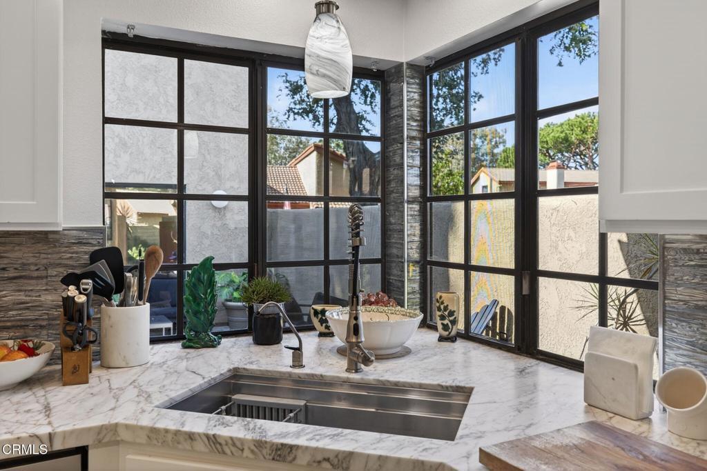 Welcome to Deckside Villas, attached single-family homes with community amenities. This well-designed plan showcases rich wood finishes with marble and stone surfaces. Two private courtyards provide space for entertaining, gardening, or relaxing. A garage with direct access from a courtyard patio and an excellent interior location within the community add to the appeal. Enter through a private gate to a spacious patio. Once inside the home, enjoy the open kitchen with multiple windows allowing for plenty of natural light. Marble counters and beautiful cabinetry frame the space. The laundry area is here for convenience. The kitchen door leads to the second patio with terrific sun exposure. The dining space and living room have soaring ceilings, which offer wonderful options to showcase artwork and lighting. The stacked-stone fireplace and wood mantel are also notable features. The thoughtful design continues to the main level primary suite, with double door entry and a spa-like bathroom. The primary bedroom opens to the courtyard. Upstairs are two bedrooms and an upgraded bathroom with a tub and shower combination. One bedroom has a west-facing window for coastal breezes and gorgeous sunsets. Ample storage is throughout, including a built-in dining area cabinet, a second level linen cabinet, a storage tower in the primary bath, a large closet beneath the stairs with organizers, shelving in the laundry area, and the full-size garage. Deckside Villas residents enjoy HOA amenities including tennis and pickleball courts, a pool and spa, and landscaped grounds. Seabridge Marina access is across the street, and Mandalay Shores beach is a few minutes by car or a scenic 20-minute walk through harborside and coastal neighborhoods. The marina also includes waterfront paths, dining and retail. There are nearby launches for stand-up paddleboarding and kayaking. A variety of yacht clubs and marinas offer docks for electric boats, sailboats, and powerboats, and there are several fishing locations and surf spots close by. The Channel Islands Harbor, known for its Sunday Farmers Market on land, and as the Gateway to the Channel Islands by sea, is 5 miles away. For shopping, nightlife and a music and cultural arts scene, Downtown Ventura is 10 miles way, while The Collection in RiverPark is 7 miles away. There are multiple golf courses within 15 min, and hiking trails from which to enjoy coastal and hillside views. Move in today, entertain tonight!