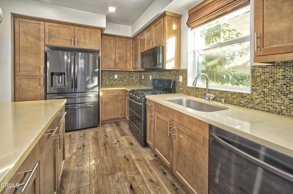 Welcome to this move-in-ready 4-bedroom, 4-bath tri-level home in the desirable Wagon Wheel neighborhood of Oxnard, offering approx. 2,015 sq ft of updated living space. Freshly painted throughout with modern finishes and a functional floor plan. The main living area features a cozy fireplace and abundant natural light. Enjoy a private third-story patio, ideal for relaxing or entertaining. Short distance to Wagon Wheel Brewing Company, HoneyCup Coffee, shopping, parks, and convenient freeway access. A great opportunity to lease in this highly sought-after community.