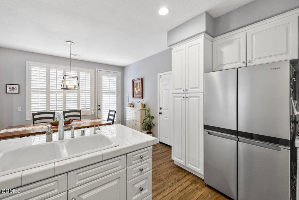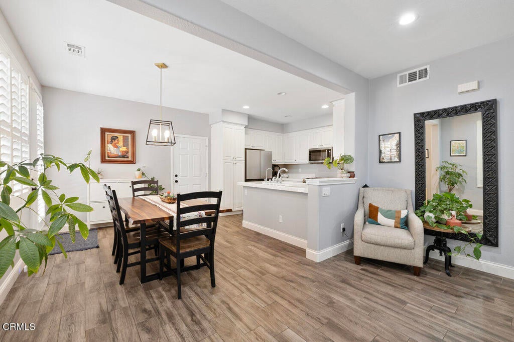 Welcome to this beautifully maintained, move-in-ready home in the gated community of Anacapa Walk, just minutes from the sand in Port Hueneme. Built in 2004 and thoughtfully designed for easy living, this 3-bedroom, 2.5-bath residence offers the ideal blend of space, light, and functionality.Step inside to soaring ceilings, warm bamboo-style laminate flooring, and a cozy gas fireplace that anchors the inviting living area. The open-concept layout creates natural flow between the living room, dining space, and kitchen -- perfect for both daily life and entertaining.The kitchen offers generous counter space and storage, opening directly to a private fenced patio ideal for relaxing, outdoor dining, and enjoying the coastal breeze. A convenient guest half-bath and direct access to the attached 2-car garage complete the main level.Upstairs, the spacious primary suite provides a peaceful retreat with a large walk-in closet and an en-suite bath featuring dual sinks. Two additional bedrooms and the upstairs laundry room add comfort and convenience exactly where you need it.Located near beaches, coastal paths, shopping, and dining, this home offers the perfect opportunity to enjoy low-maintenance living in a private gated setting.
