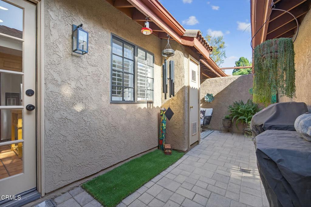 Beautifully maintained 3-bedroom, 2-bath residence located in the highly desirable Deckside Villas community, this immaculate home offers an exceptional interior corner location and reflects true pride of ownership throughout.A gated entry welcomes you into a spacious front patio--an inviting extension of the home and a perfect spot for morning coffee or evening relaxation. Inside, the light-filled main living area features soaring cathedral ceilings and a cozy fireplace, creating an open yet intimate atmosphere. From the comfort of the living room couch, enjoy peaceful sunset views as the sky shifts through warm coastal hues--an everyday luxury that makes this space feel like home.The dining area opens through sliding glass doors to a private back patio, ideal for seamless indoor-outdoor living, entertaining, or unwinding after a long day. The well-appointed kitchen showcases maple cabinetry, Corian countertops, recessed lighting, tile flooring, shutters, and quality finishes that blend functionality with timeless style.The spacious primary suite is conveniently located downstairs and is filled with natural light. It features recessed lighting, a ceiling fan, a large mirrored closet with custom built-ins, and a sliding door that opens directly to the front patio, offering a serene retreat. The remodeled en-suite bathroom boasts a walk-in shower with striking high-end finishes, including black fixtures and hardware, complemented by a quartz vanity countertop.Upstairs, two additional bedrooms include mirrored closets, ceiling fans, and wood flooring, along with a thoughtfully renovated bathroom and dedicated linen cabinetry for added convenience.Thoughtful storage solutions are found throughout the home, including built-in cabinetry in the dining area and a generous under-stair storage closet. Two private patios provide ample space for entertaining, gardening, or quiet reflection. Additional highlights include a two-car garage with built-in cabinets and direct access from the back patio, as well as a private corner location within the community.Residents enjoy access to HOA amenities including tennis and pickleball courts, a pool and spa, and beautifully landscaped grounds. Seabridge Marina is just a short walk away, offering scenic waterfront paths, dining, shopping, and a variety of coastal activities--bringing the best of marina-side living right to your doorstep.