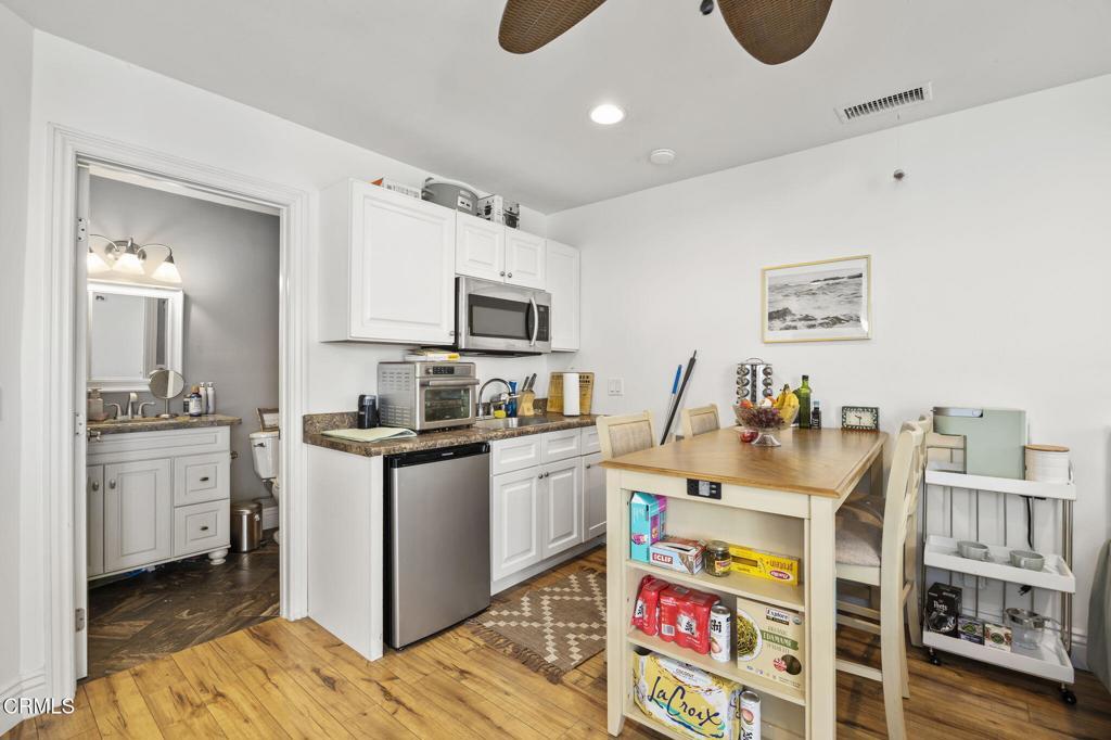 Historic charm in the heart of downtown Ventura! Originally built in 1885, this single-family home w/attached guest quarters and 1 bd detached ADU was meticulously renovated in 2015. Plumbing, electrical, roofing, insulation, landscape/hardscape, windows, paint, and all interior finishes were updated. Offering exceptional flexibility, this versatile property is ideal for investors, owner occupants seeking rental income, or multi-generational living. Located in one of downtown's most historic neighborhoods, you're just minutes' walk to the beach and a short stroll to the top restaurants and breweries. Featuring 3 bedrooms and 2 baths plus a covered porch, the main residence offers an inviting open floor plan complete with high ceilings. Highlights include a gourmet kitchen w/ stainless steel appliances, elegant stone countertops, spa-inspired bathrooms, and wood like flooring throughout. The attached guest quarters includes a kitchenette with mini fridge and microwave, wood like flooring, remodeled bath, closet, and private outdoor space. The detached ADU offers a full kitchen, modern bath, spacious bedroom, and plenty of storage space. Private outdoor areas for the main home and guest quarters, three off-street parking spaces, and low-maintenance landscaping complete the property. Don't miss this rare opportunity!