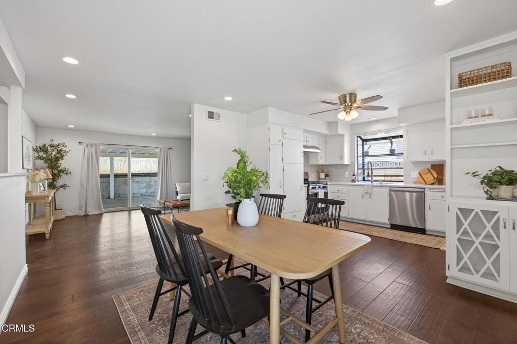 Welcome to this charming single-level home in East Ventura! From the moment you arrive, you'll appreciate the inviting curb appeal featuring an extended driveway, beautifully landscaped and low maintenance front yard, and freshly painted exterior accented by striking dark forest green double doors and red bricks entry.What I love about this home is that although it offers a modest 1,328 SqFt, the layout feels open, light, and functional from the moment you walk in and then with hardwood flooring throughout the main living areas. The living room offers a warm and welcoming atmosphere with open floating shelving and a cozy fireplace as the focal point. The kitchen opens seamlessly to the dining area and features ample cabinetry, stainless steel dishwasher, range hood, a stylish backsplash, and a lovely bay window that fills the space with natural light.The home offers 3 bedrooms and 2 full bathrooms, both updated with new vanities, modern light fixtures, and tasteful backsplash finishes. The primary bedroom is located at the front of the home and includes its own en-suite bathroom.Originally built in 1964, this home has seen numerous major upgrades, including copper plumbing installed in 2015, a replaced shingle roof, and central heating with a newer furnace installed. Additional improvements include dual pane windows, two sliding glass doors one from the living room and one from a bedroom for convenience, As well as textured walls, removal of acoustic ceilings throughout, and upgraded LED lighting to name a few more improvements!The spacious backyard is designed for easy maintenance, fruit trees, features a wood patio covering for shade during warm nights, and offers RV parking. Great location by parks, shopping, schools, and freeway access! Home is move in ready for you!