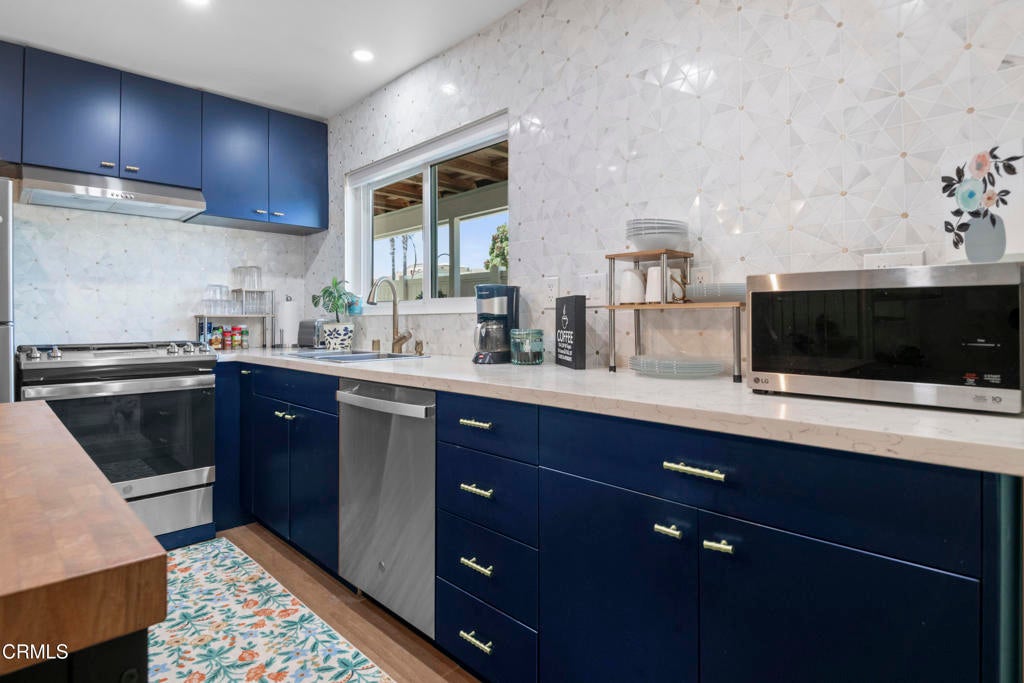 Incredible opportunity to live in Mandalay Shores, just steps from the beach. Available furnished or unfurnished, with designer details throughout. The open-concept living space features a chic kitchen with custom backsplash, marble countertops, and stainless steel appliances. Recently painted, new flooring, and lovely details throughout. A spacious living room centers around a cozy modern fireplace and doubles as a flexible space with a sleeper sofa. The bright dining area offers additional storage or a charming reading nook above. Two generously sized ensuite bedrooms include nicely updated bathrooms and convenient exterior access. Enjoy ocean breezes from the upper-level deck or entertain guests in the private downstairs patio yard. Ideally located near local shopping, freeway access, world-class beaches, and more. Make us an offer!