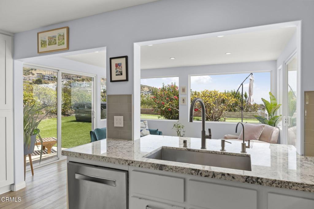 Welcome to your own hillside sanctuary, where every detail has been thoughtfully upgraded and every window frames a breathtaking view of the ocean and city lights. Situated on one of the few flat lots in Skyline, this home blends modern comfort with resort-style living. Step inside and you'll find an open, updated layout featuring a brand-new roof, dual-pane windows and sliders, upgraded electrical, and a smart three-zone Nest system with all-new ducting for heating and A/C. This smart home is loaded with premium systems including solar, a tankless water heater, whole-house water filtration, reverse osmosis, air purification, and a water softener. Even the garage has been finished with a custom door, epoxy floors, EV Charger, and RV hookups behind a gated driveway. The kitchen is a true showstopper--completely redesigned for entertaining with a Sub-Zero fridge, stainless appliances, butcher block island, and a walk-in wine room. While the full bedroom and bathroom on the first floor offer flexibility for guests or multigenerational living. Upstairs, you'll find beautifully remodeled bathrooms with designer tile and high-end Toto fixtures. But the real highlight? A private sauna on the upper balcony--perfect for unwinding as you soak in panoramic sunset views. Outside, the backyard was built to impress: two putting greens, a 6-person spa, a sleek fire pit, outdoor speaker system, drip irrigation, and custom lighting throughout. A built-in BBQ makes outdoor dining a breeze, and the tucked-away yet view-facing Tiki bar brings the vacation vibes home.
